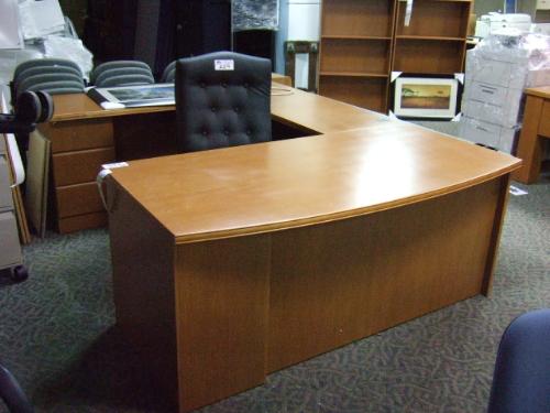 Honey Oak Traditional Bow Front U-shape Double Pedestal Executive Suite