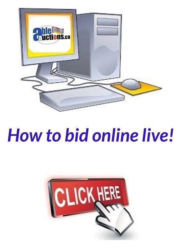 Attendance at the auction preview, or removal of purchased lots by purchaser/bidders and guests is done at their sole risk. Able Solutions Inc. assumes no risk or liability, statutory, common law or otherwise whatsoever for the safety of those attending at the auction premises.