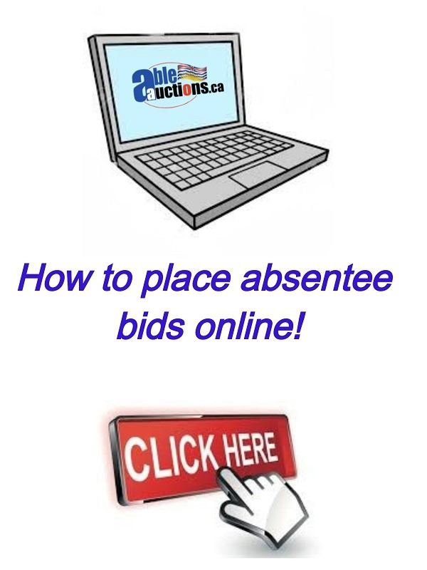 Attendance at the auction preview or removal of purchased lots by purchaser/bidders and guests is done at their sole risk. Able Solutions Inc. assumes no risk or liability, statutory, common law or otherwise whatsoever for the safety of those attending at the auction premises.