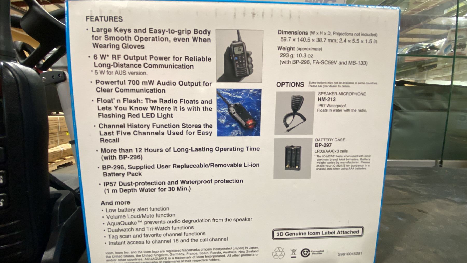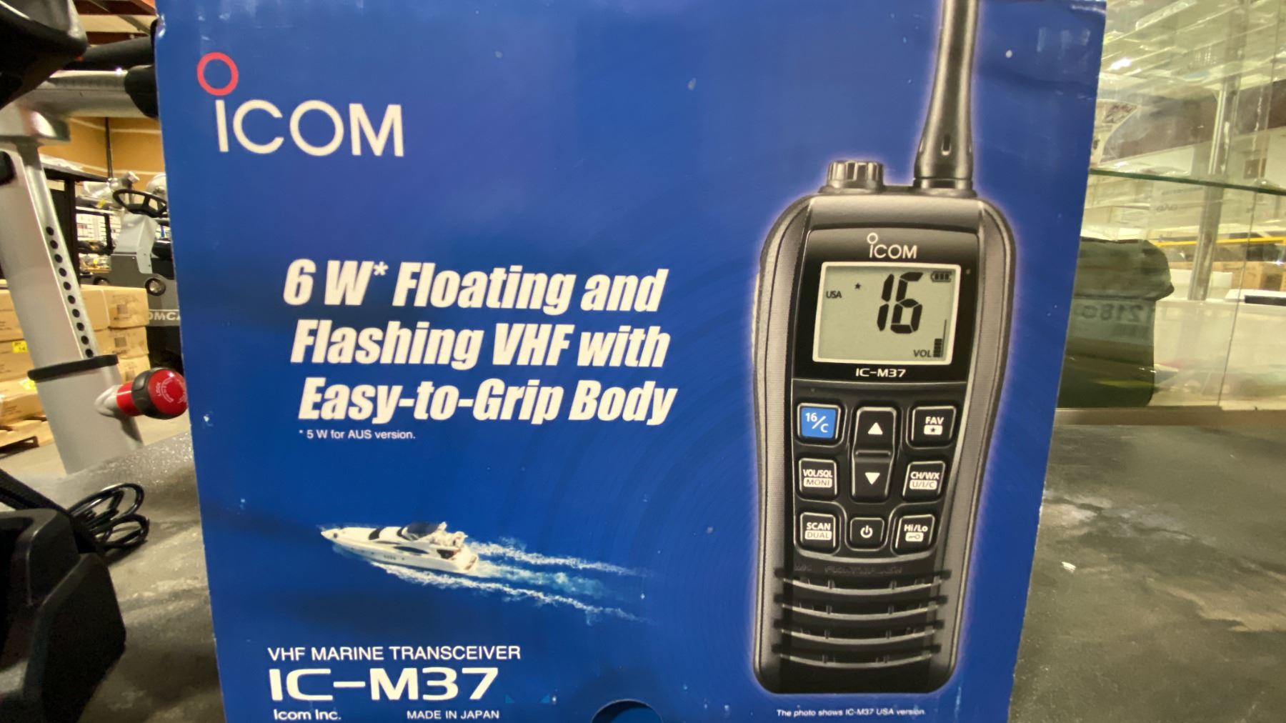 I-COM IC-M37, 6W FLOATING AND FLASHING VHF MARINE TRANSCEIVER WITH CHARGING DOCK & BOX