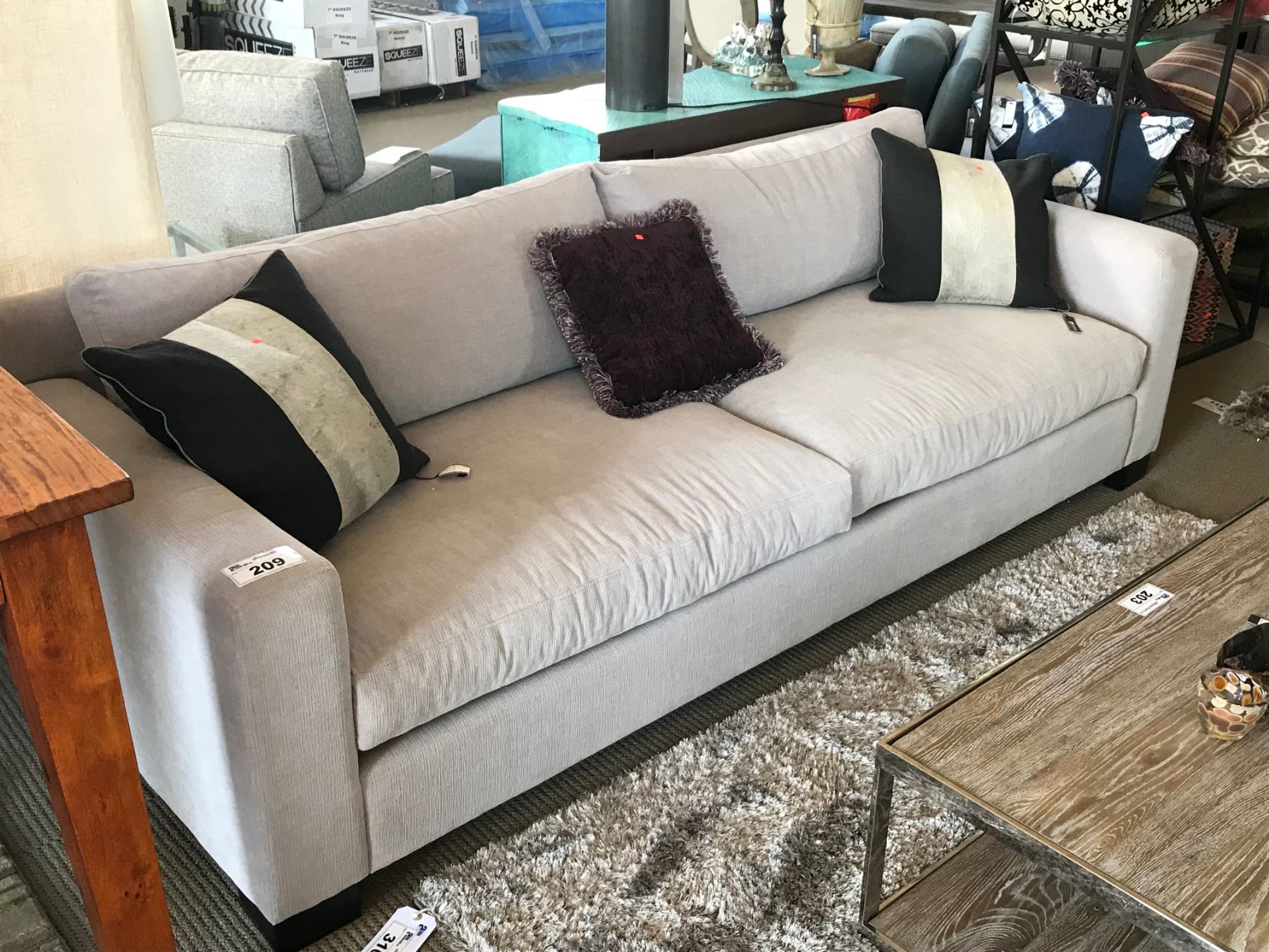 IAN GOSH GREY FABRIC DEEP SEAT SOFA WITH THROW PILLOWS