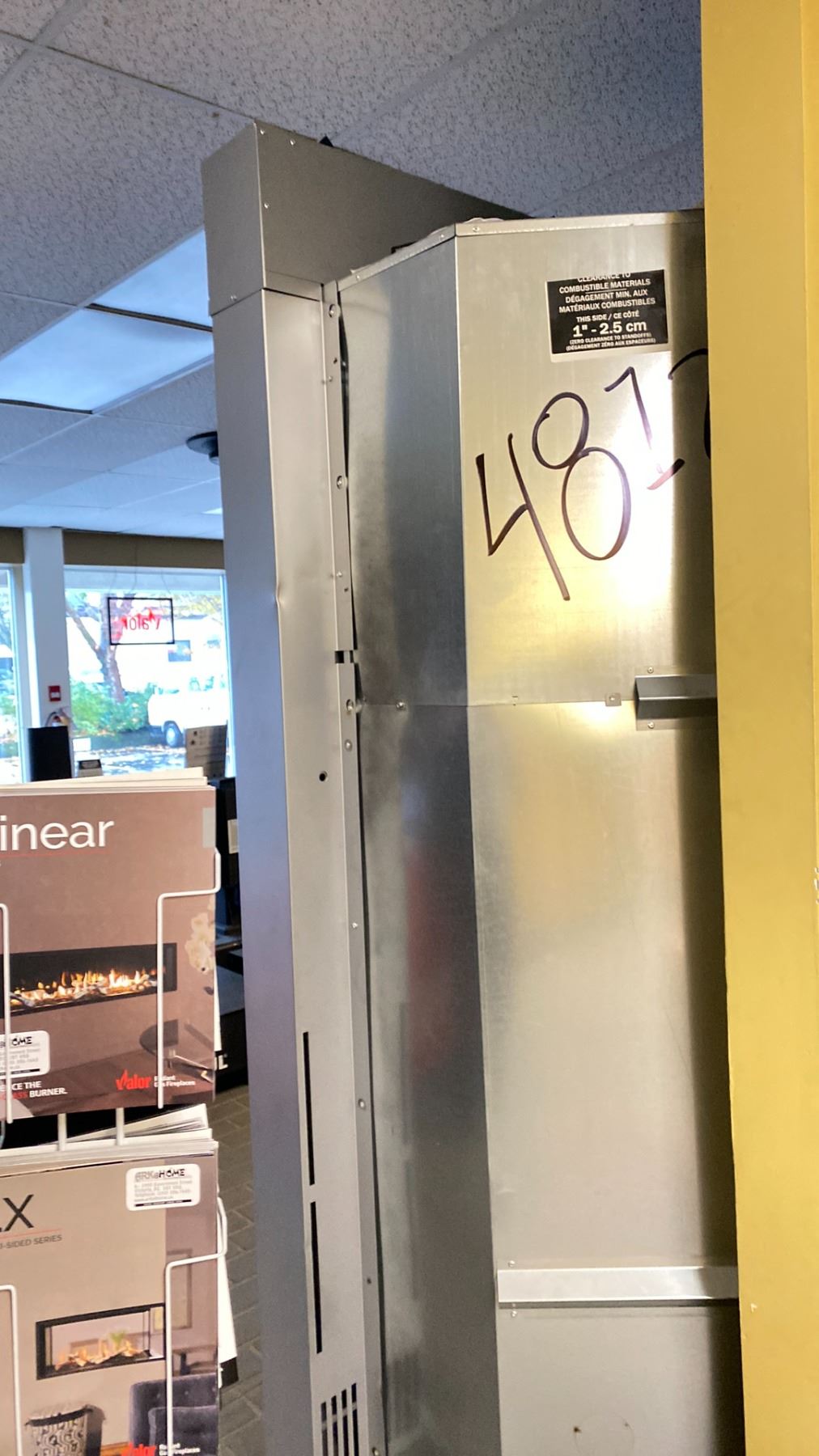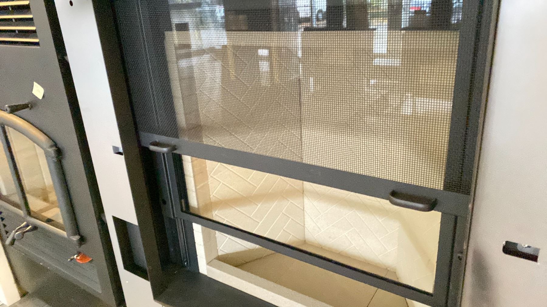 ICC-RSF RUMFORD 1000 BUILT-IN WOOD BURNING FIREPLACE THE WORLD'S FIRST OPEN DOOR CLEAN BURNING FIREPLACE. DROP DOWN GLASS COUNTERBALANCE DOOR. DROP DOWN SCREEN DOOR. $12,000 MSRP. OPENING IS 34-INCHES X 37-INCHES. OVERALL IS 57-WIDE X 79-HIGH X 28-DEEP.