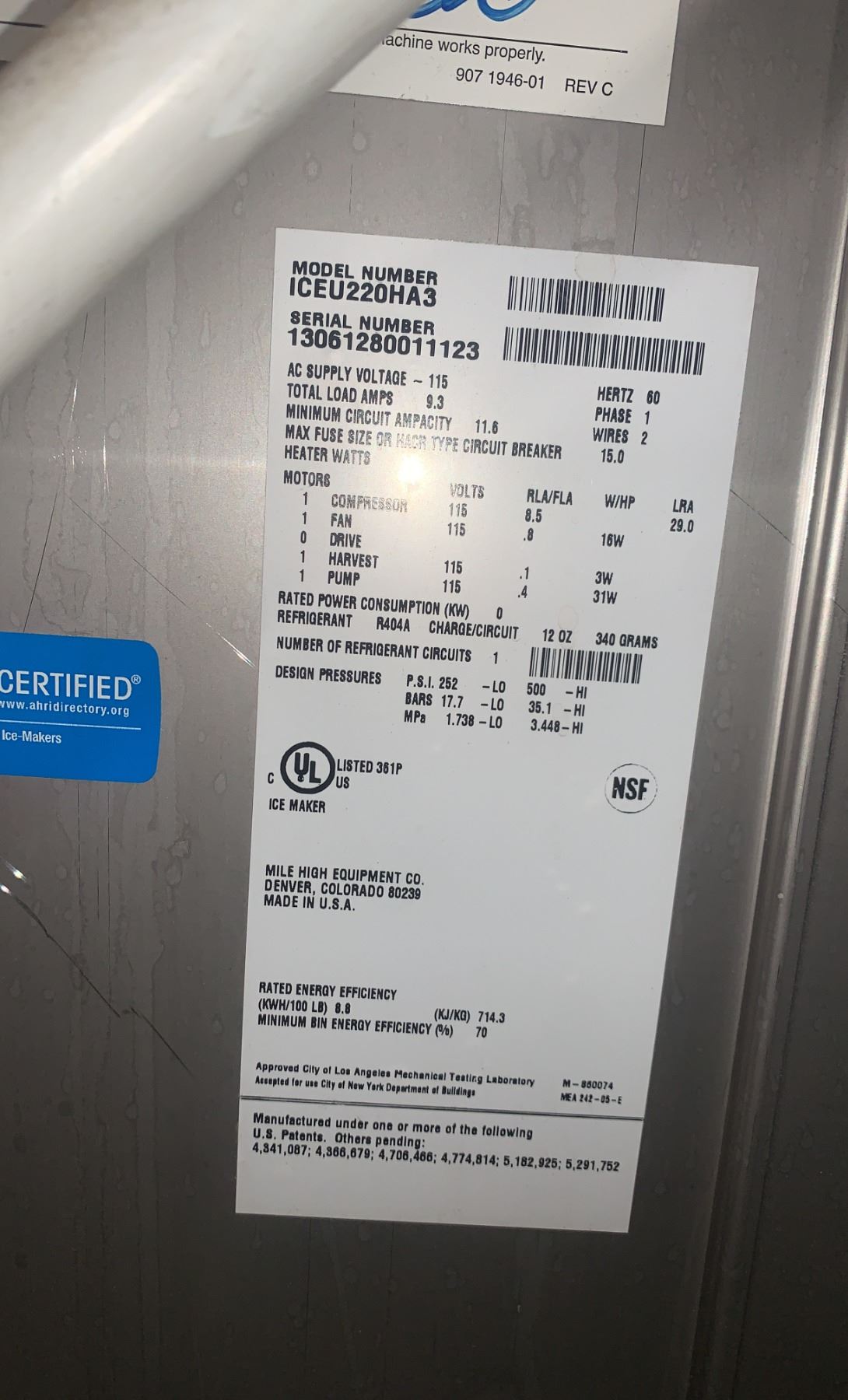 ICE-O-MATIC ICEU220HA3 STAINLESS STEEL COMMERCIAL UNDER THE COUNTER ICE MAKER ** 4 WHEEL DOLLY NOT INCLUDED **