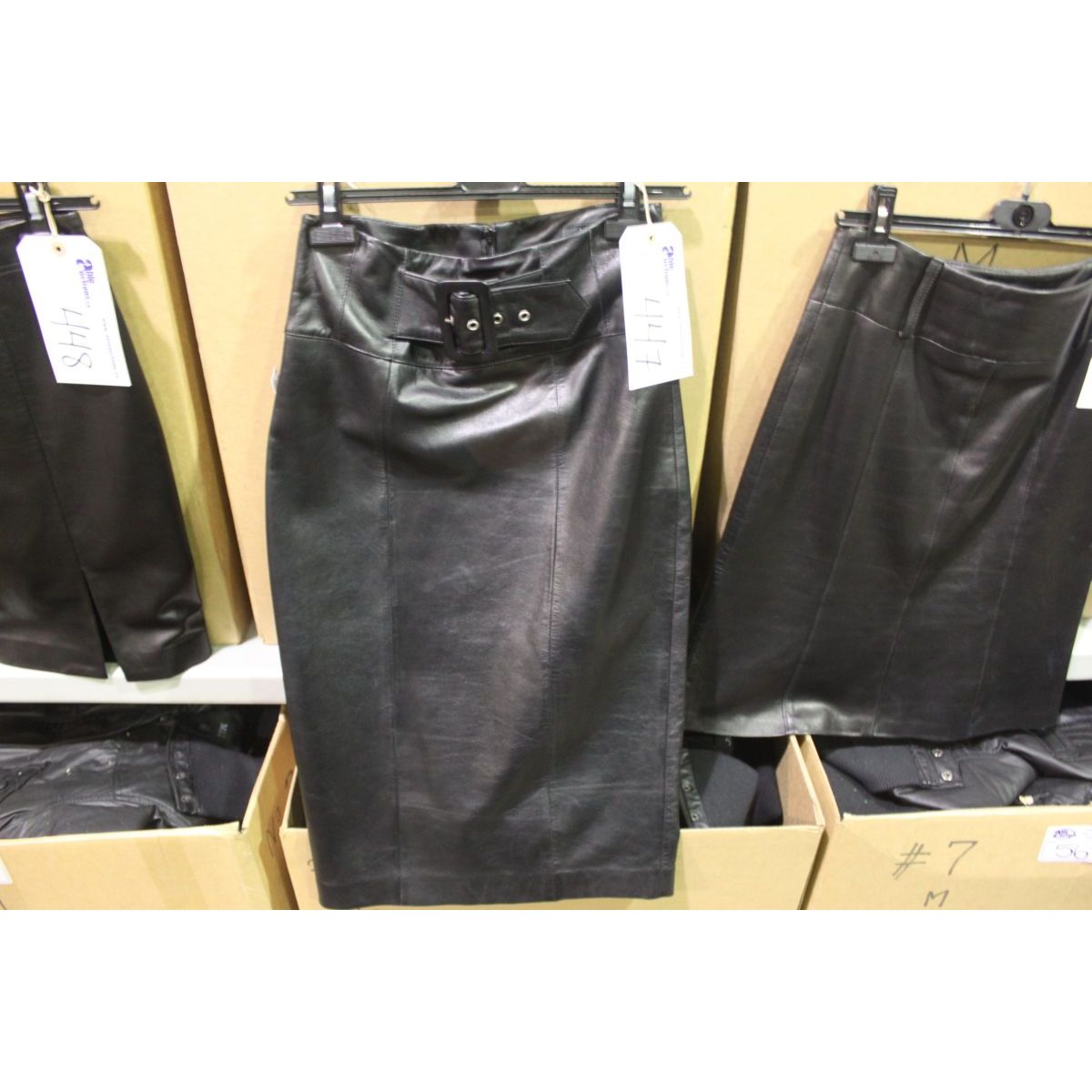 IDENTIFY BLACK LEATHER KNEE LENGTH SKIRT SIZE 4 (RACK 10)