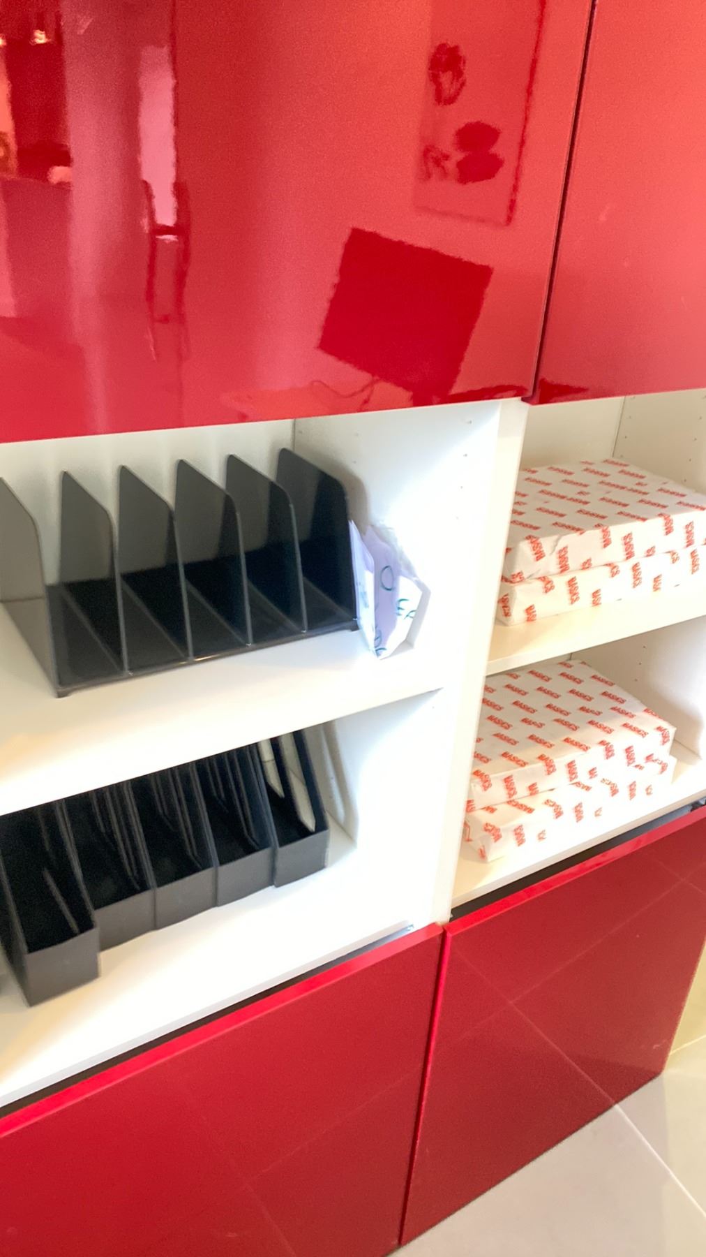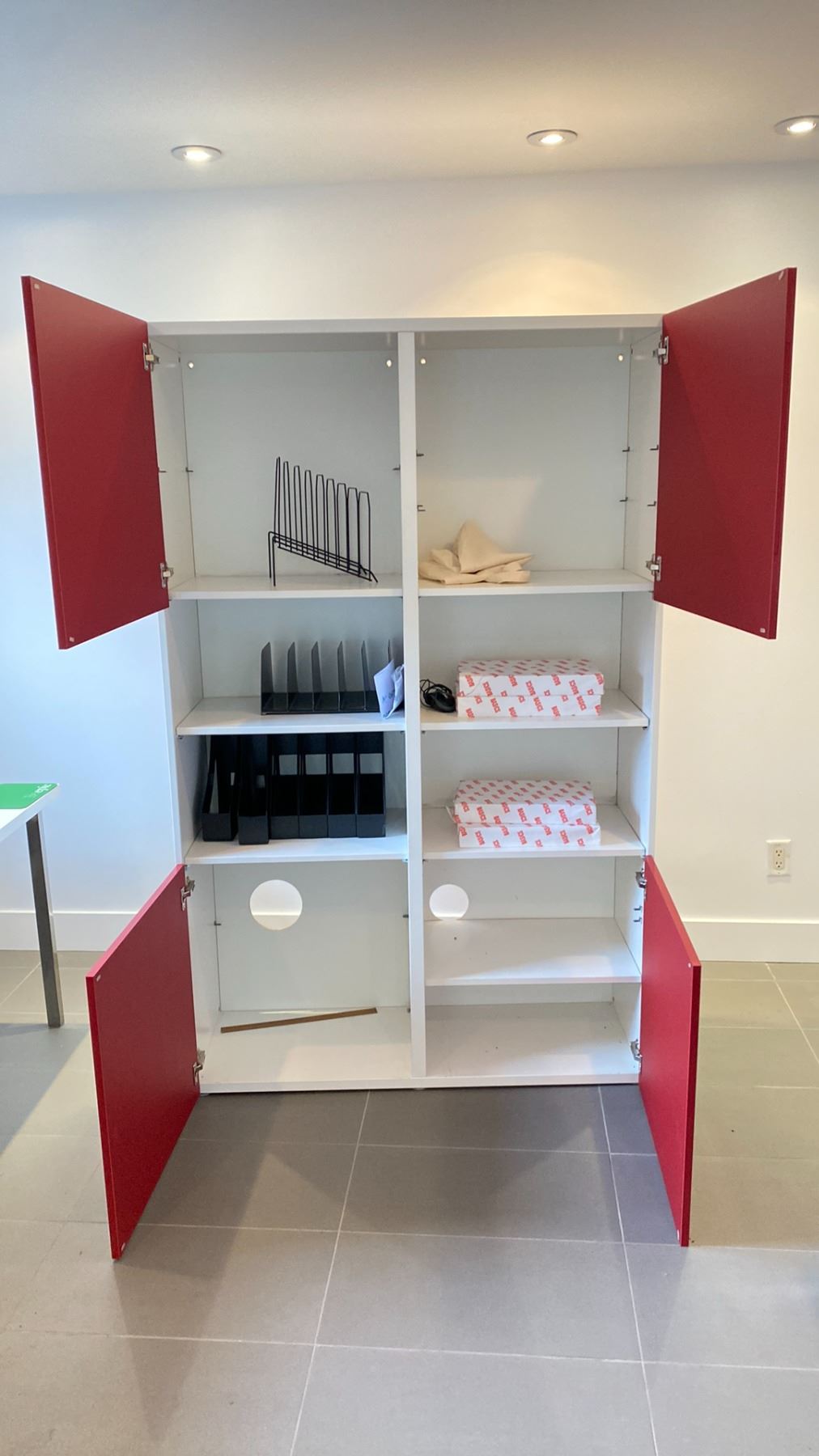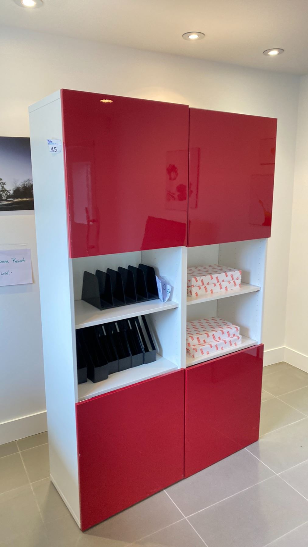 IKEA 48X76  CABINET WITH GLOSS RED DOORS NO CONTENTS