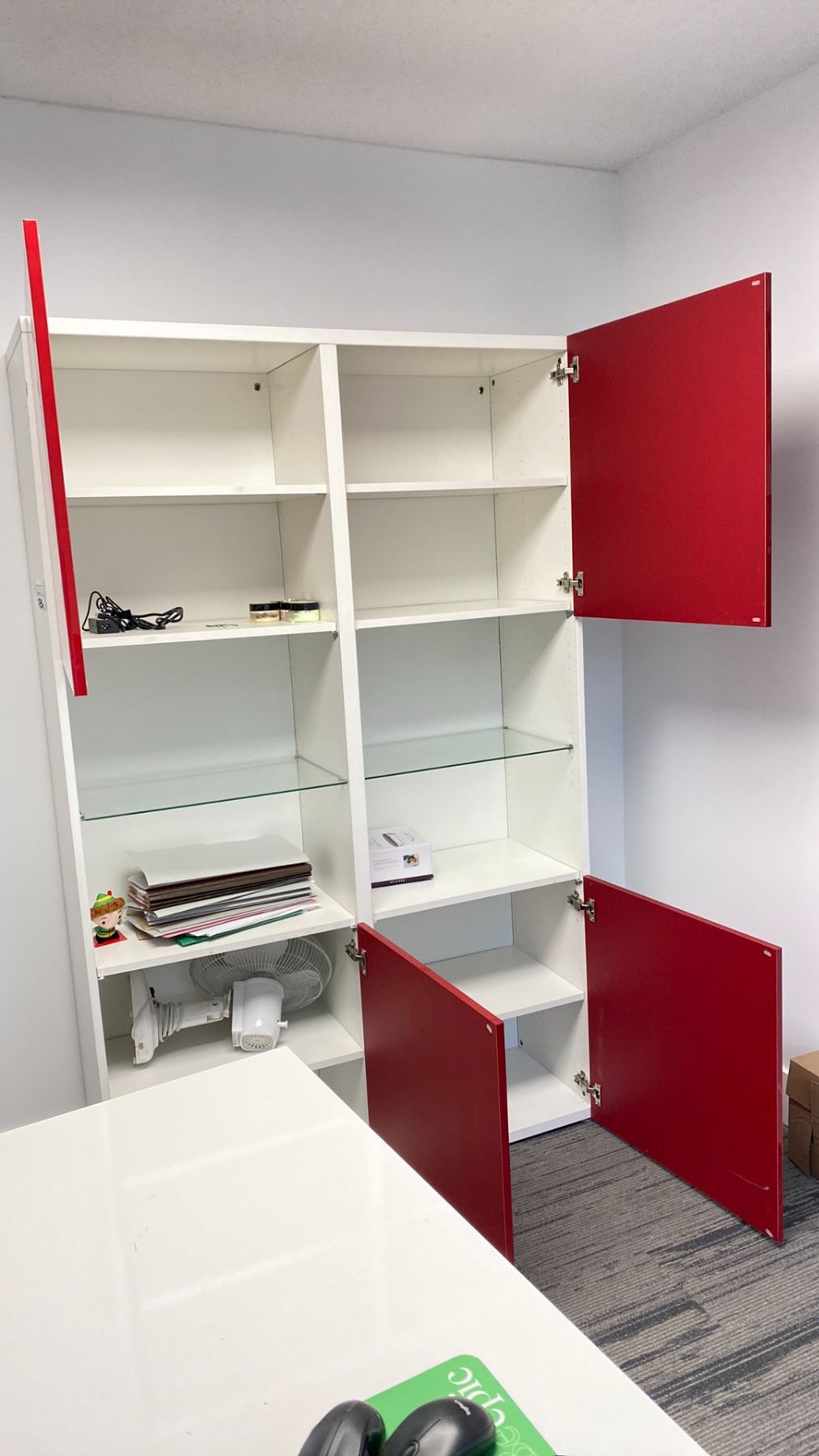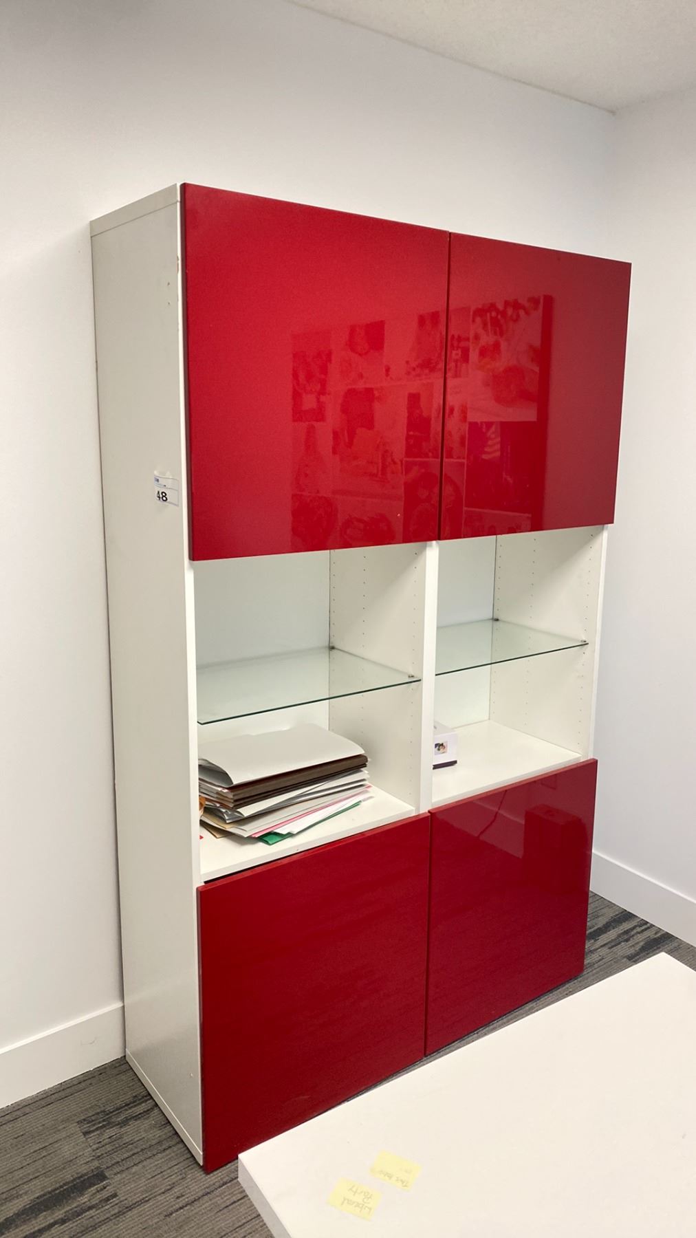 IKEA 48X76  CABINET WITH GLOSS RED DOORS NO CONTENTS