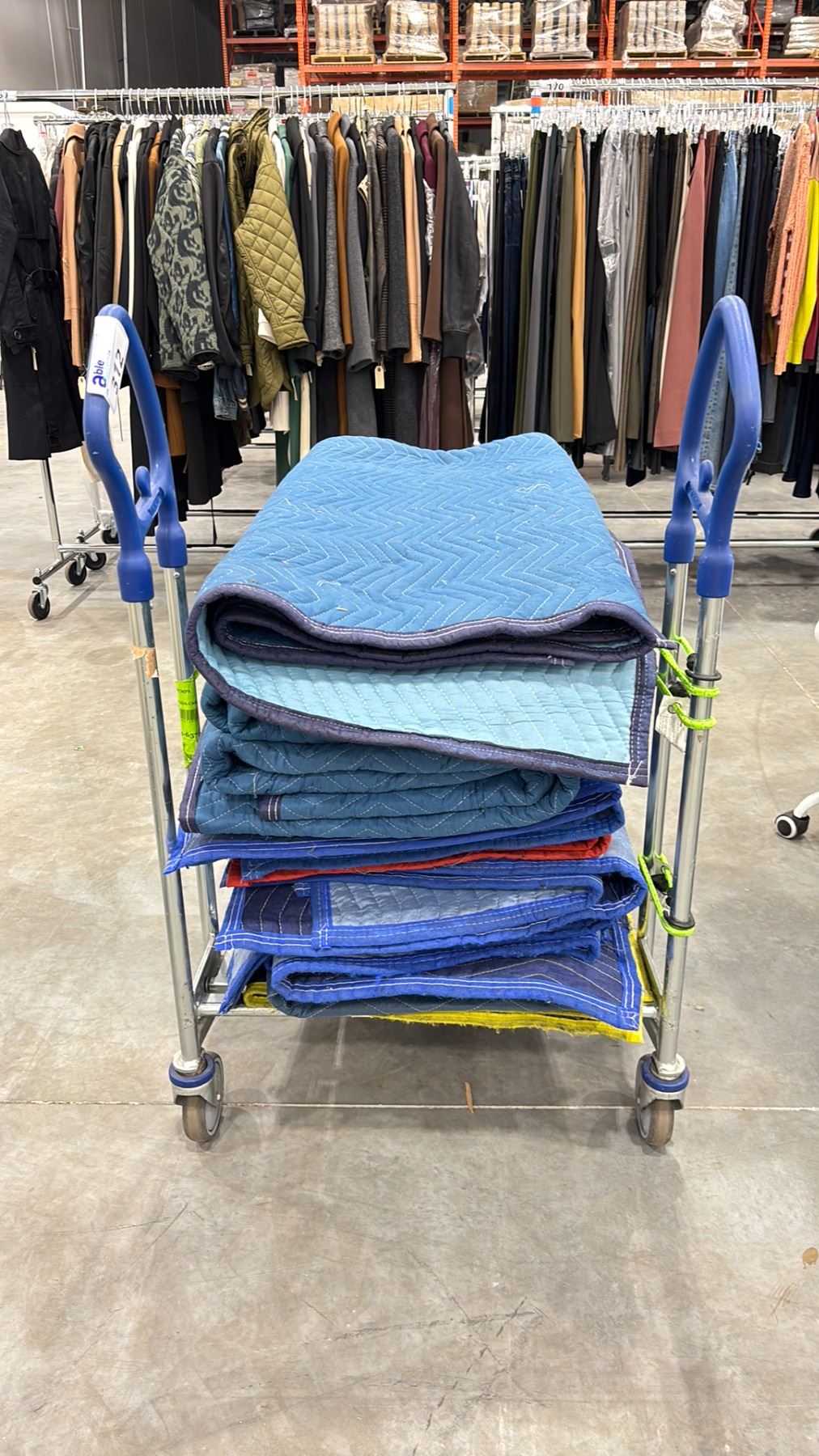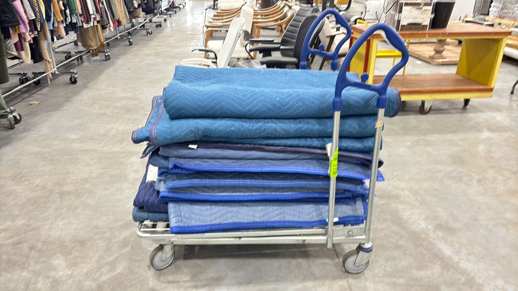 IKEA SHOPPING CART WITH STACK OF MOVING BLANKETS