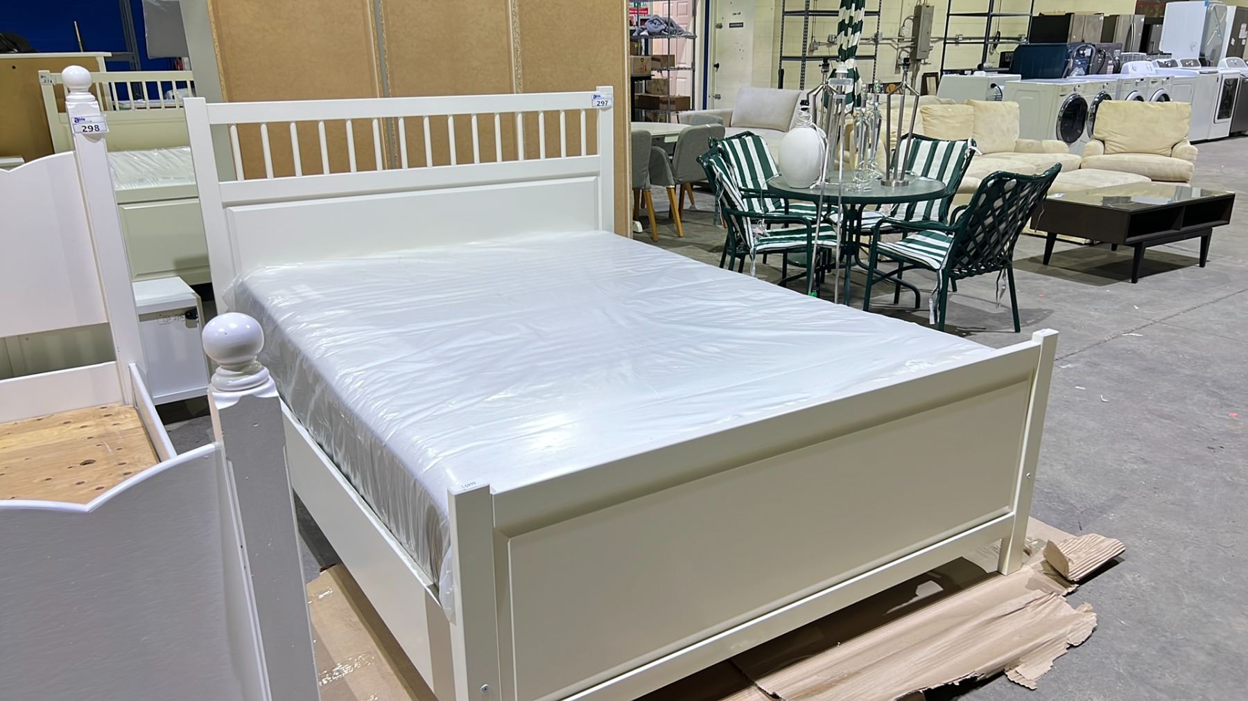 IKEA WHITE BED FRAME ON WOODEN SLATS & MATTRESS