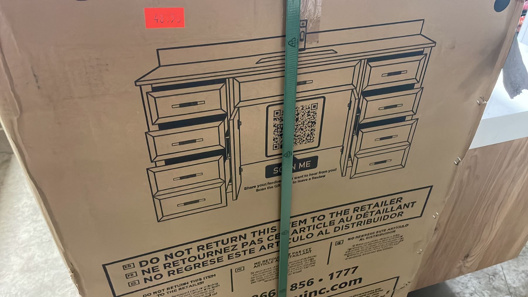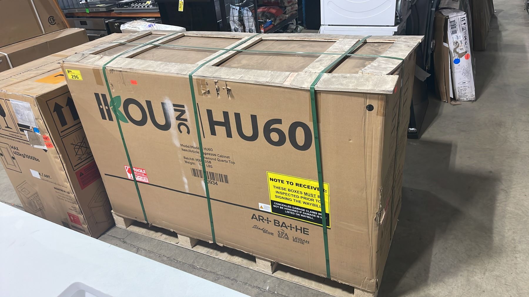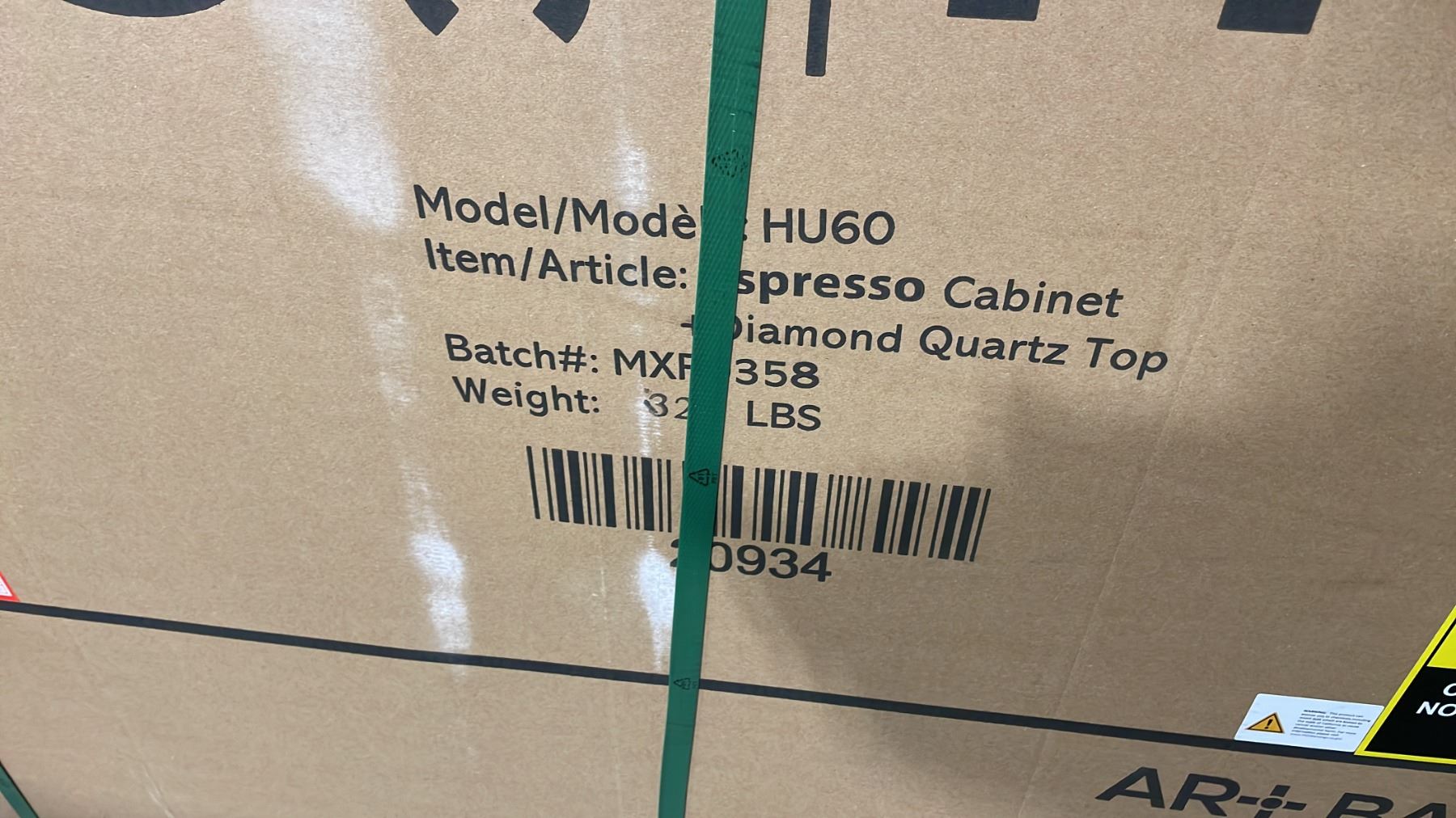 IKOU INC MODEL HU60. QUARTZ TOP 60"W X 22"D ESPRESSO 9 DRAWER 2 DOOR BATHROOM VANITY WITH SINKS *IN BOX*