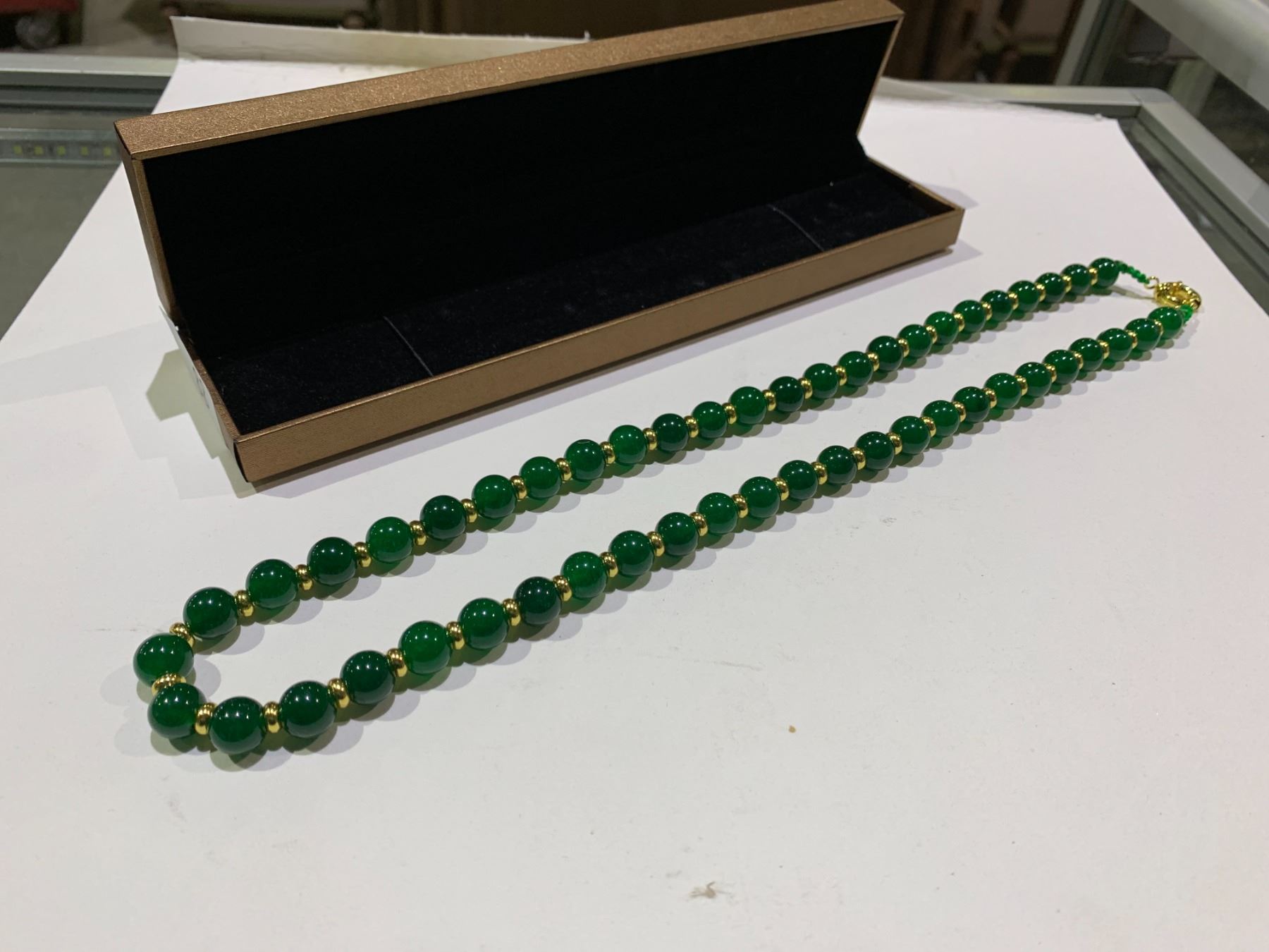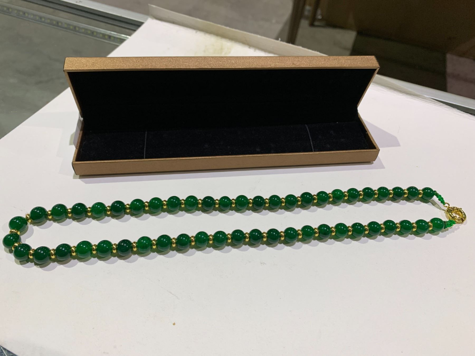 IMPERIAL GREEN JADEITE NECKLACE IN CASE
