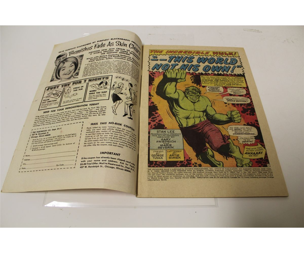 INCREDIBLE HULK #102 (1968) BIG PREMIERE ORIGIN ISSUE!  LOWER GRADE, COMPLETE, FULL, TIGHT & SUPPLE.