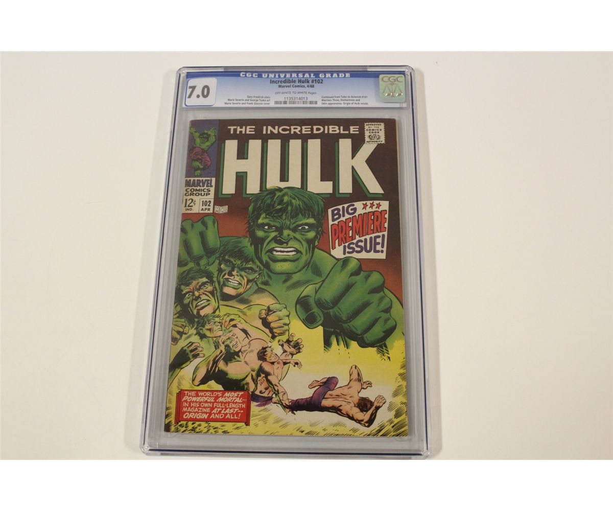 INCREDIBLE HULK #102 (1968) CGC GRADED 7.0 CONTINUED FROM TALES TO ASTONISH #101, ORIGIN OF HULK RETOLD