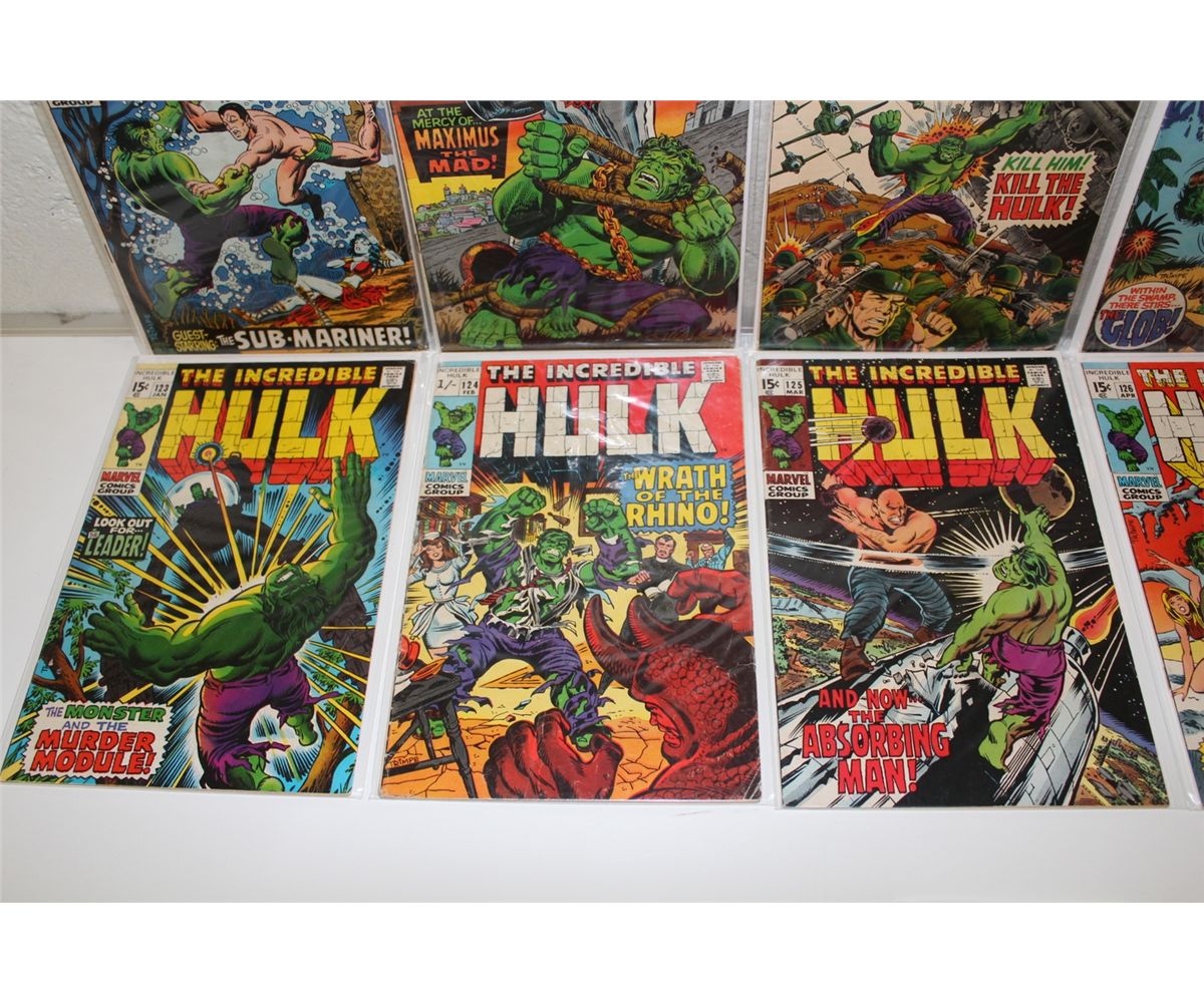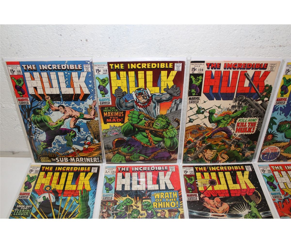 INCREDIBLE HULK #118-129, 132-135 & 143-144 (1969-71) ALL 15 CENT COVER, SILVER/ BRONZE RUN LOW TO MID GRADE, 18 BOOKS TOTAL, SOLID RUN