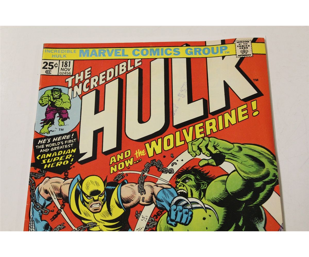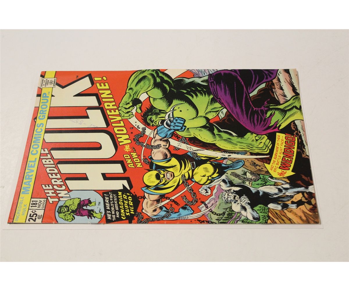 INCREDIBLE HULK #181 (1974) 1ST APP. WOLVERINE, MAJOR MARVEL KEY - THE MOST SOUGHT AFTER BOOK PUBLISHED IN THE LAST 40 YEARS! HIGH MID GRADE COPY, SLIGHT TO MODERATE WAVINESS ON LEFT EDGE, DEEP COLOURS, GLOSSY, RIGHT & SUPPLE, STAMP INTACT, A VERY NICE COPY
