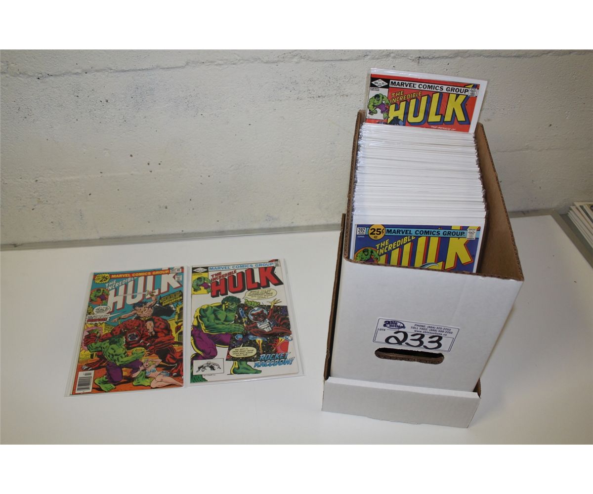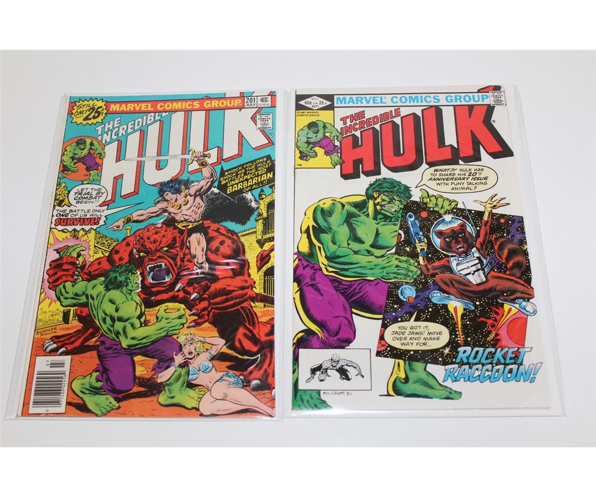 INCREDIBLE HULK #201-275 CONSECUTIVE RUN (1976-82) 7 YEAR BRONZE RUN MINUS #253. INCLUDES #271 - RED HOT ROCKET RACCOON ISSUE. HIGH GRADE AVERAGE MANY NM RANGE COPIES, 74 BOOKS TOTAL, BEAUTIFUL RUN