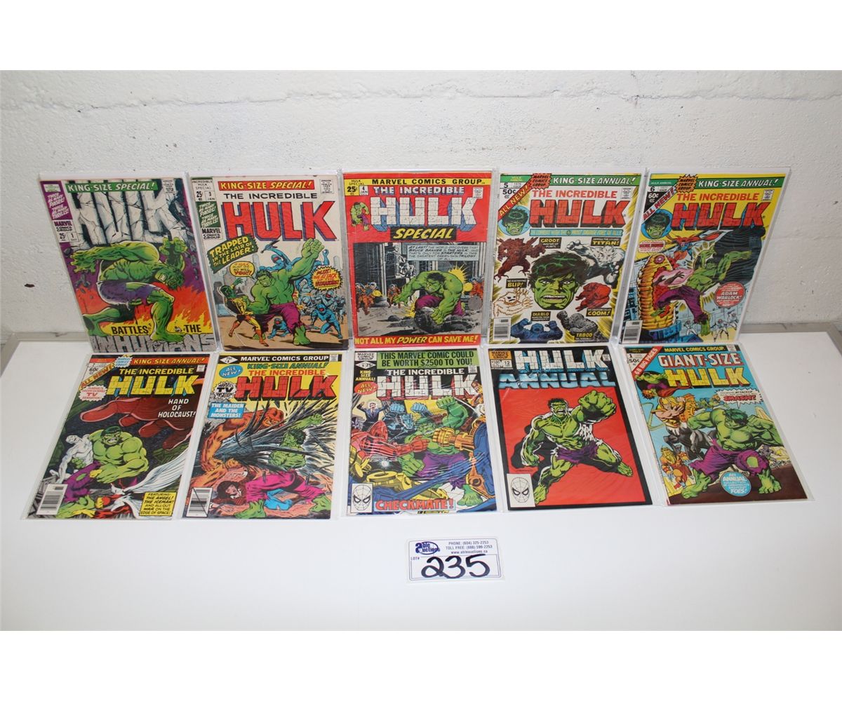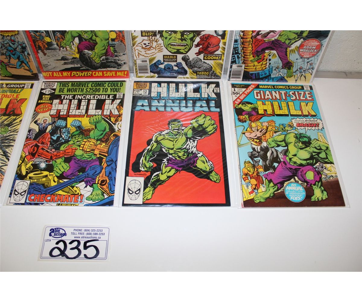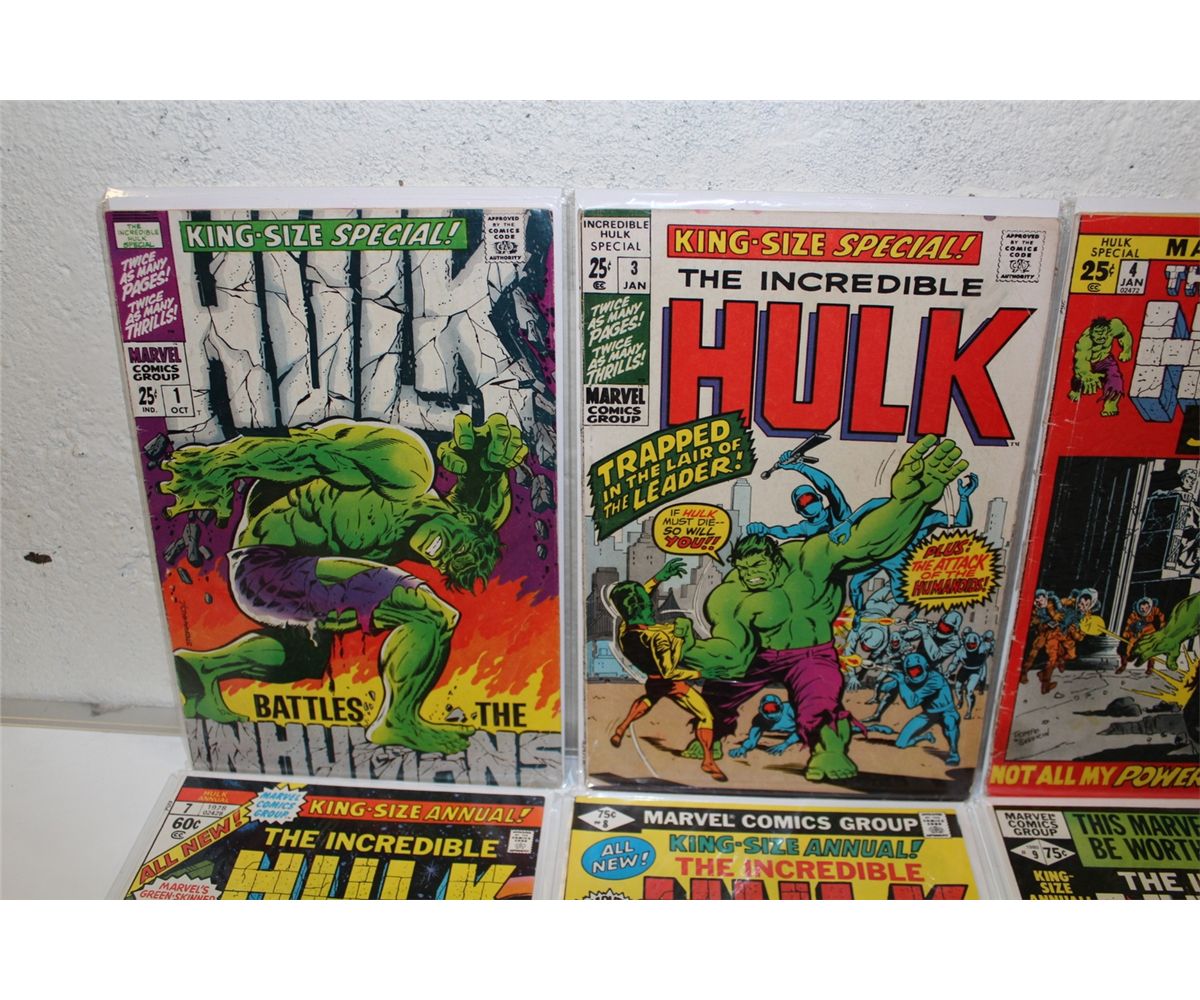 INCREDIBLE HULK ANNUAL RUN #1, 3-9 & 12 + GIANT SIZE #1. (1968-83) MIXED GRADE 15 YEAR HULK ANNUAL RUN HOWEVER MAINLY HIGHER GRADE 10 BOOKS TOTAL, SHARP SET!