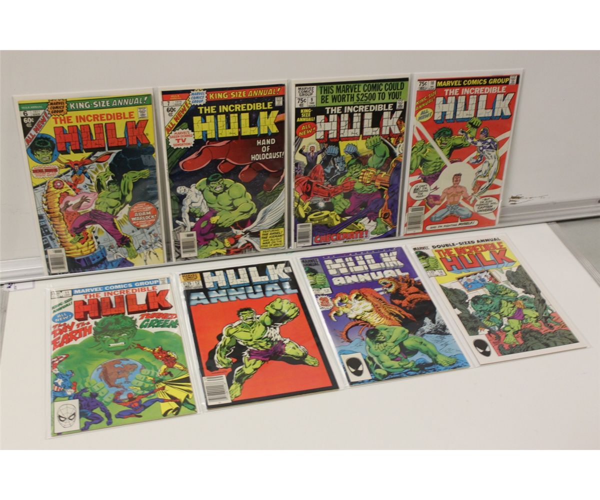 INCREDIBLE HULK ANNUALS RUN #'S 6-7, 9-19, '97 & '98 + 1 BRONZE ONE SHOT.  16 ISSUES TOTAL (1977 - 98) MIXED GRADE WITH MANY HIGHER
