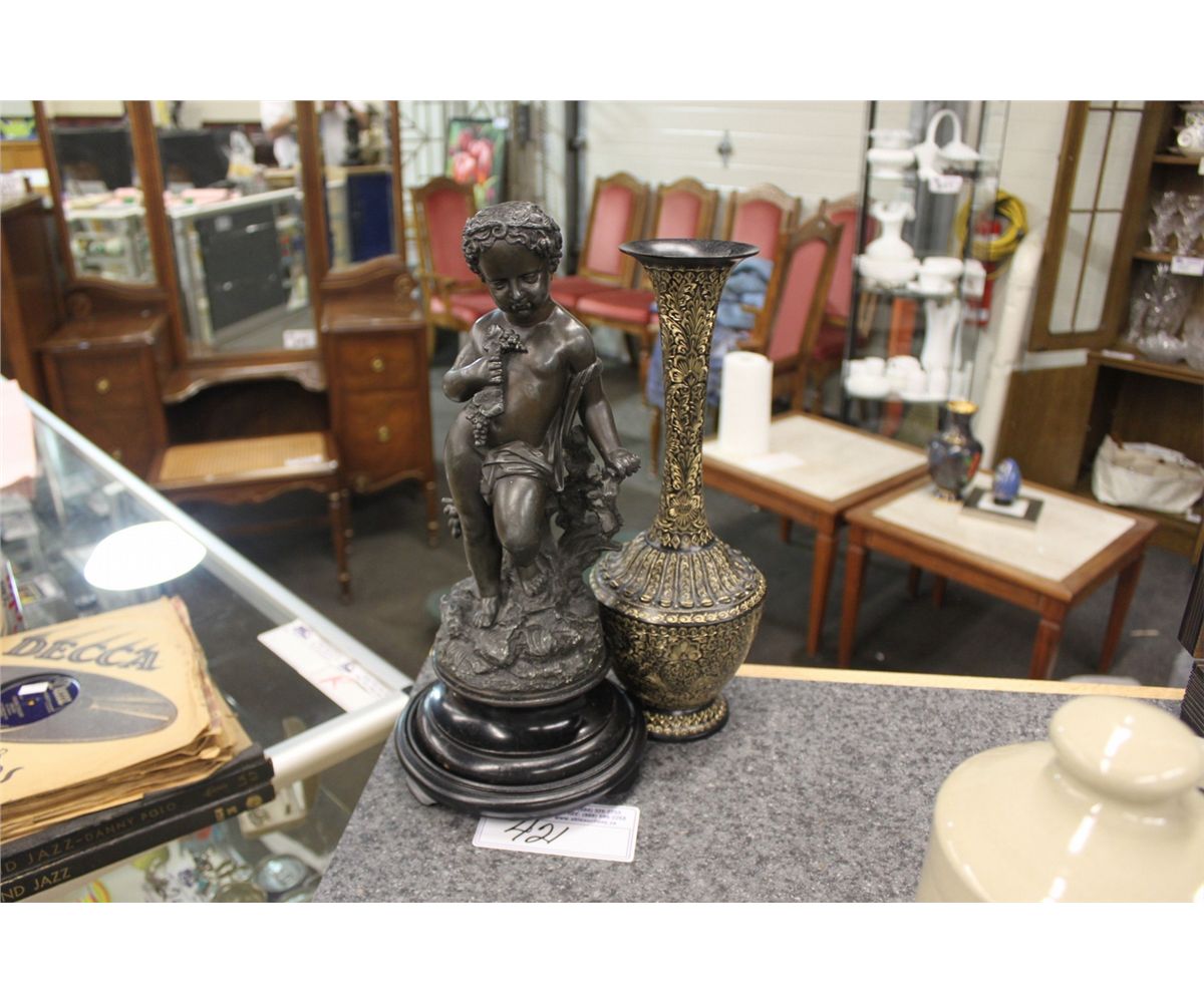 INDIA VASE & BRONZE SCULPTURE WITH BASE
