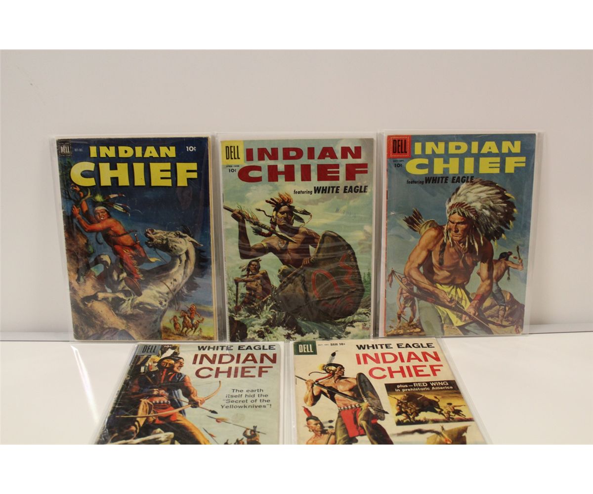 INDIAN CHIEF #8-32 (1952) 10 CENT DELL WESTERN COMICS IN LOW-MID GRADE AVERAGE 5 BOOKS TOTAL.