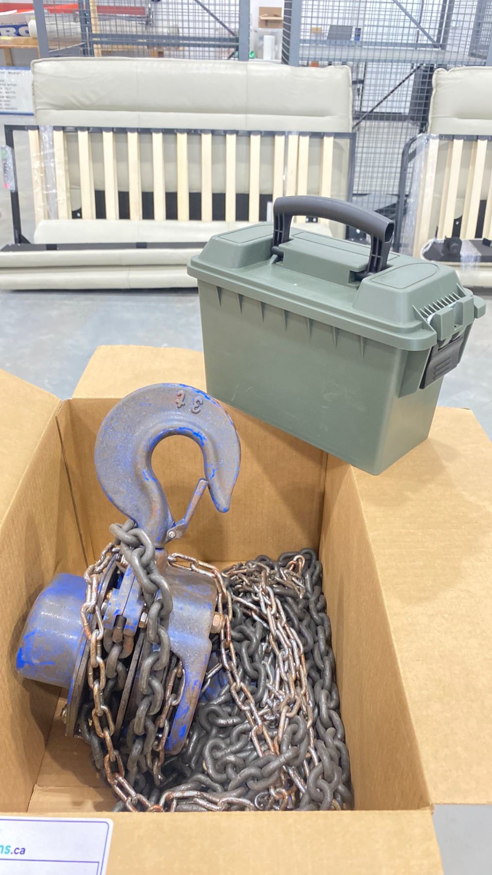 INDUSTRIAL CHAIN HOIST WITH CHAIN & PLASTIC AMMO BOX