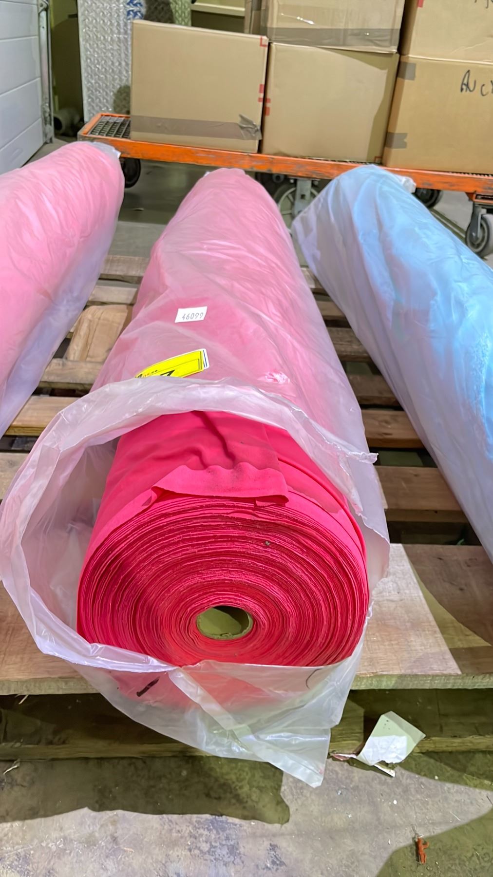 INDUSTRIAL ROLL OF FABRIC MEANT FOR LARGE RUNS OF ATHLETIC CLOTHING WATERMELON 87% POLYESTER 13% SPANDEX, 60" WIDTH 55 YARDS 49.25LBS