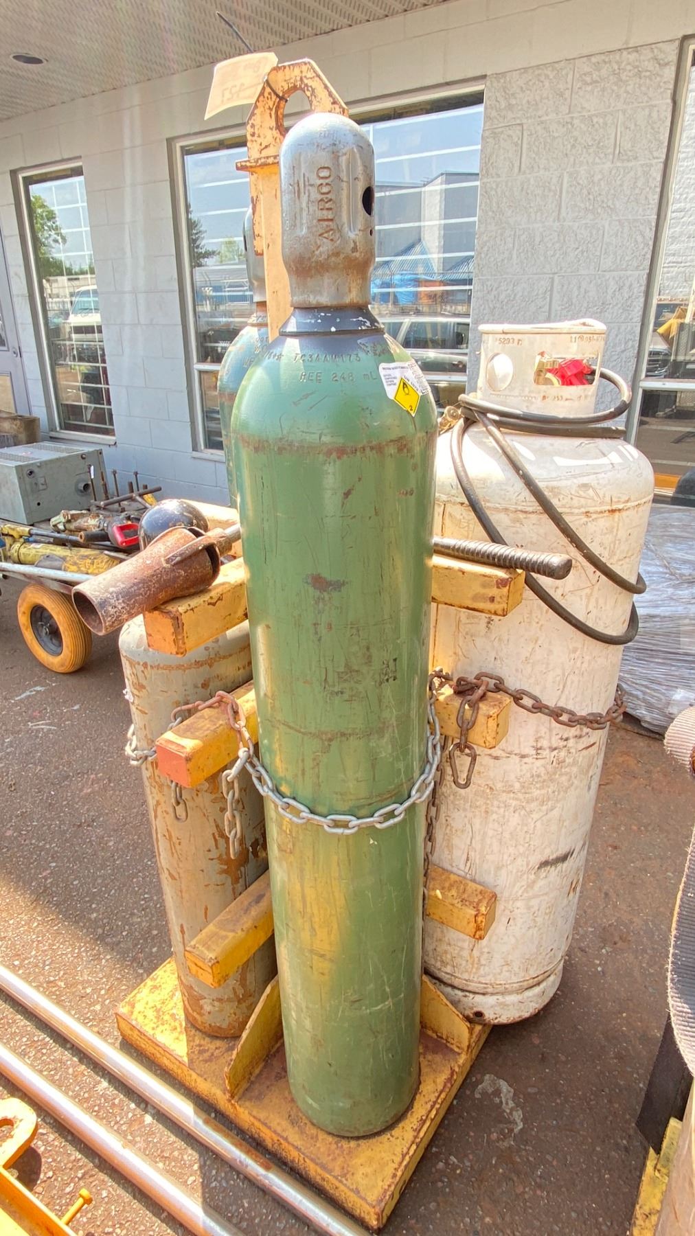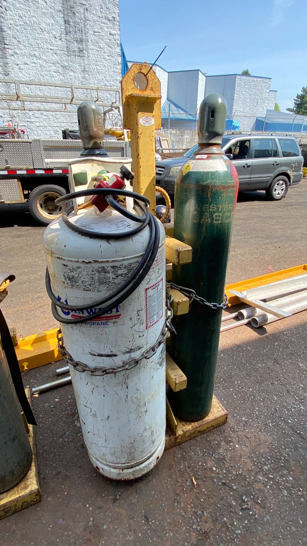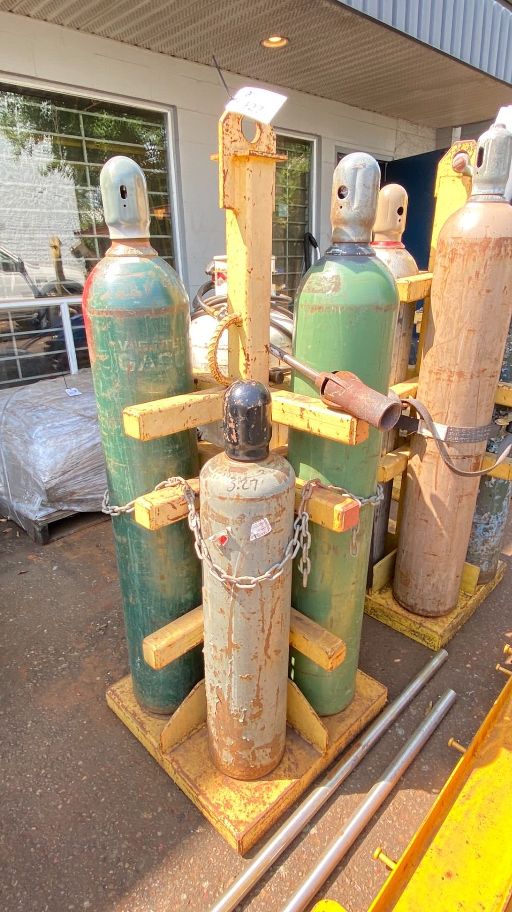 INDUSTRIAL WELDING TANK CADDY LIFT WITH 4 ASSORTED GAS CYLINDERS