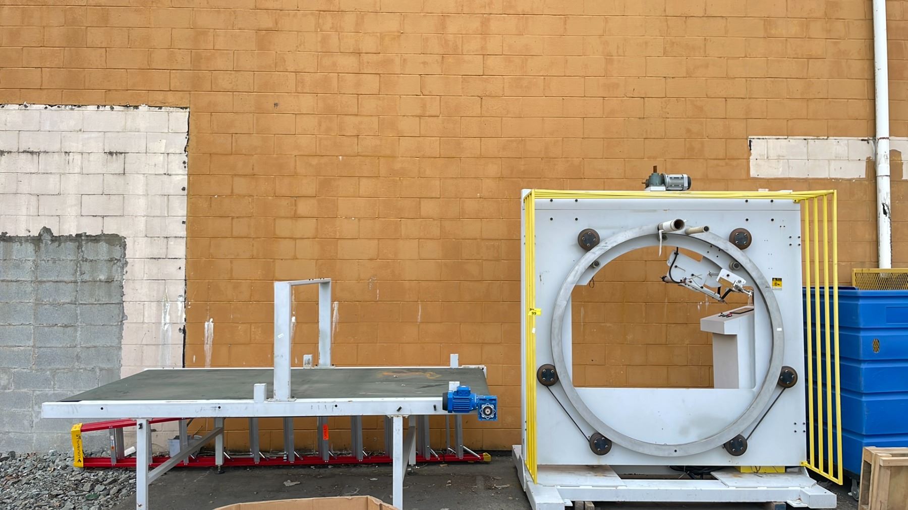 INDUSTRIAL WRAPPING MACHINE WITH CONVEYOR TABLE *REQUIRES FLAT DECK TRUCK*