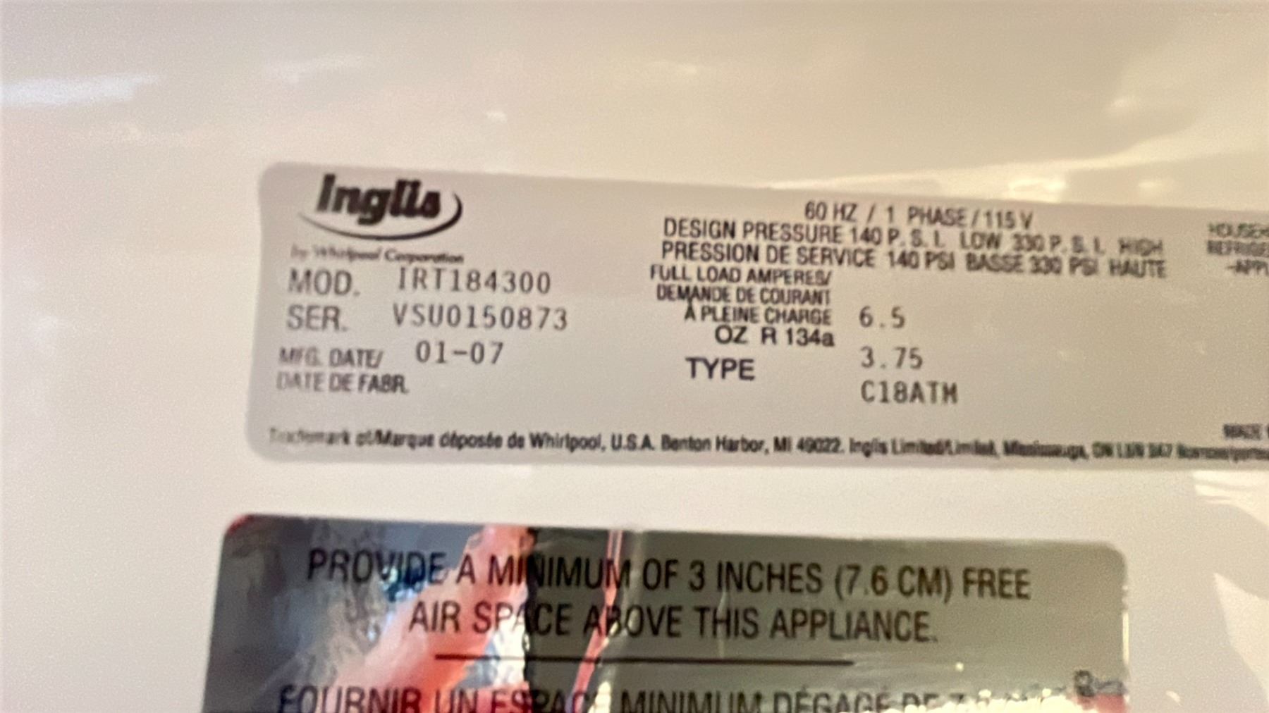 INGLIS 28" W TOP FREEZER SWING DOOR REFRIGERATOR