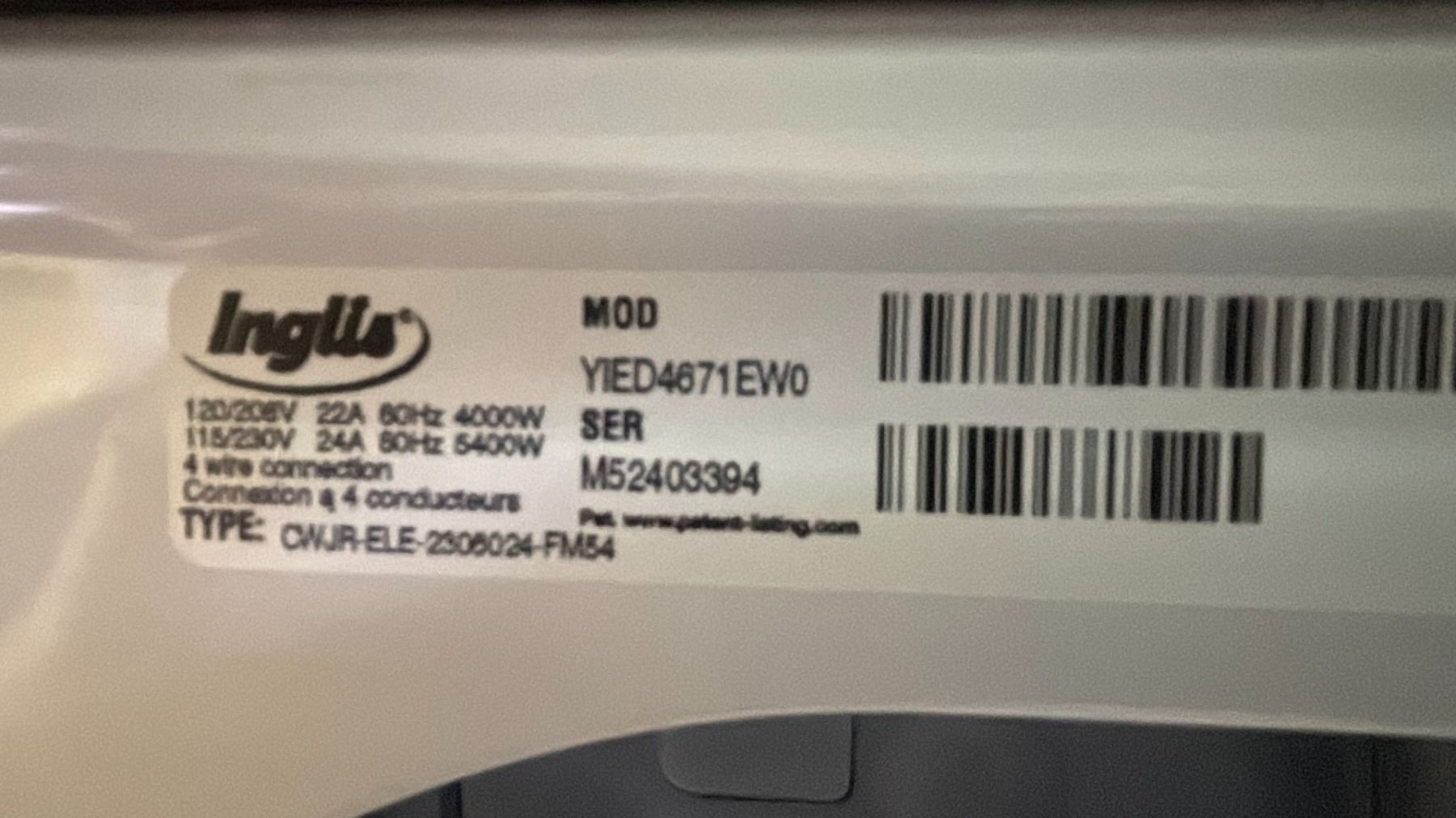 INGLIS FRONT LOAD DRYER
