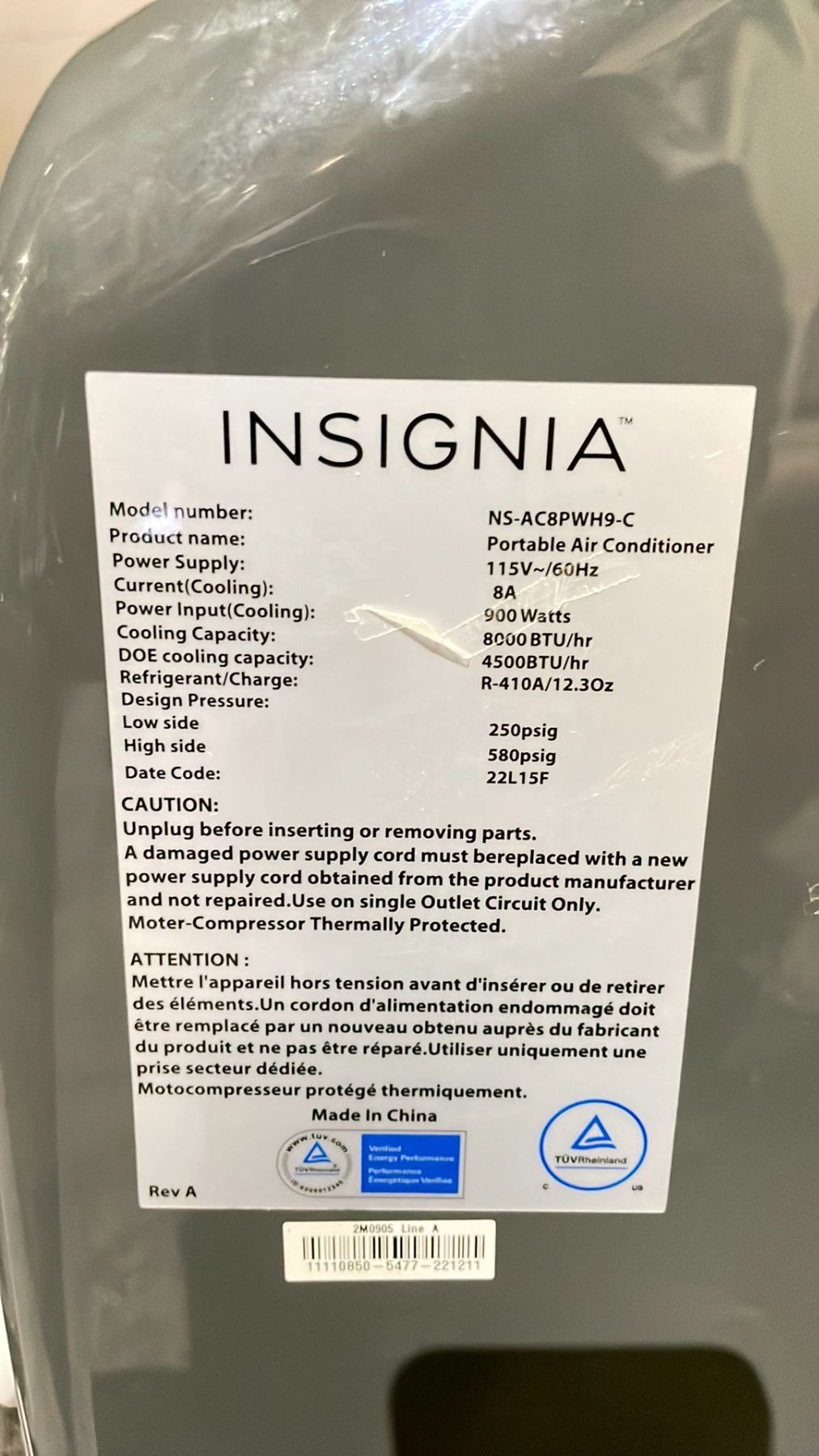 INSIGNIA PORTABLE AIR CONDITIONER 8000BTU