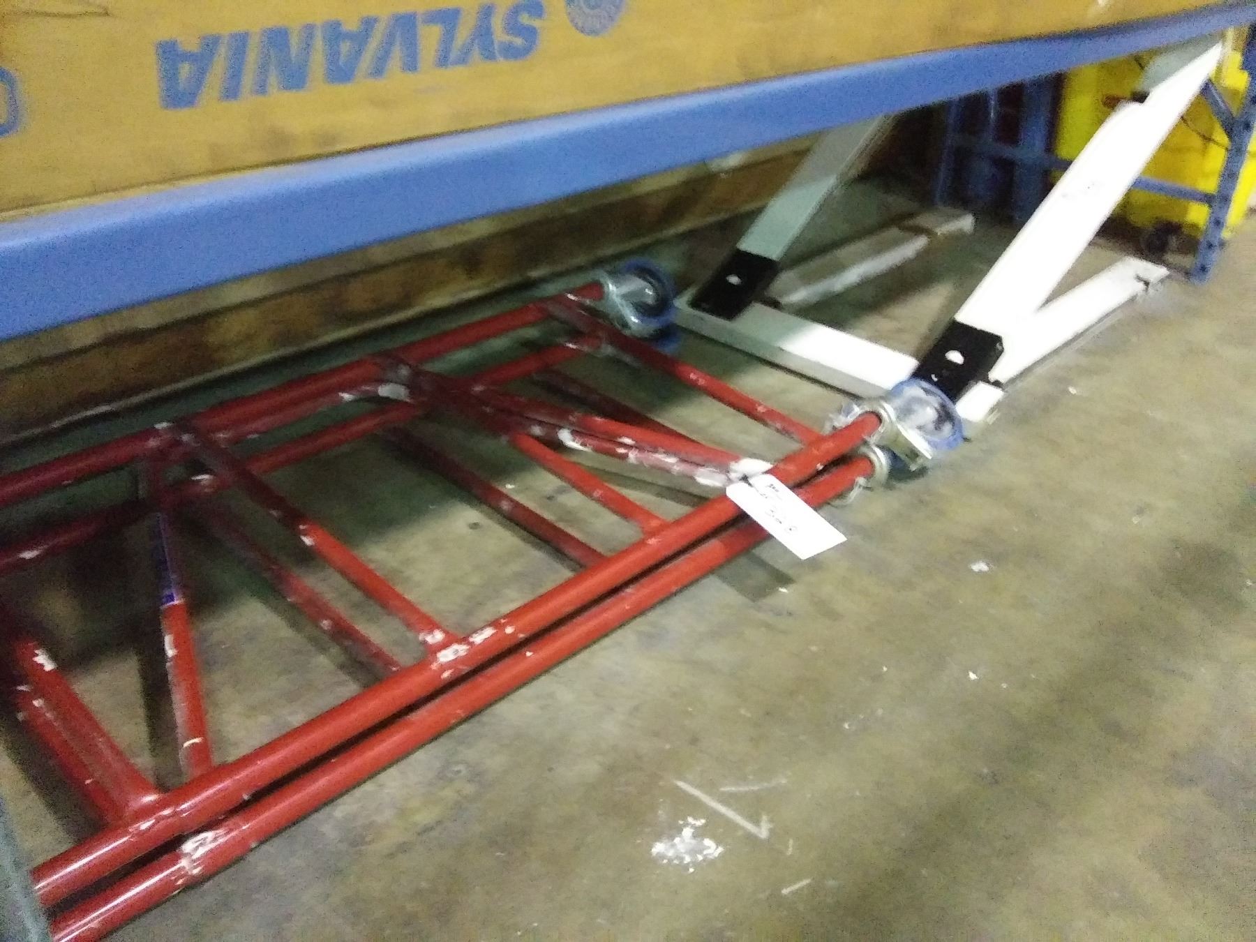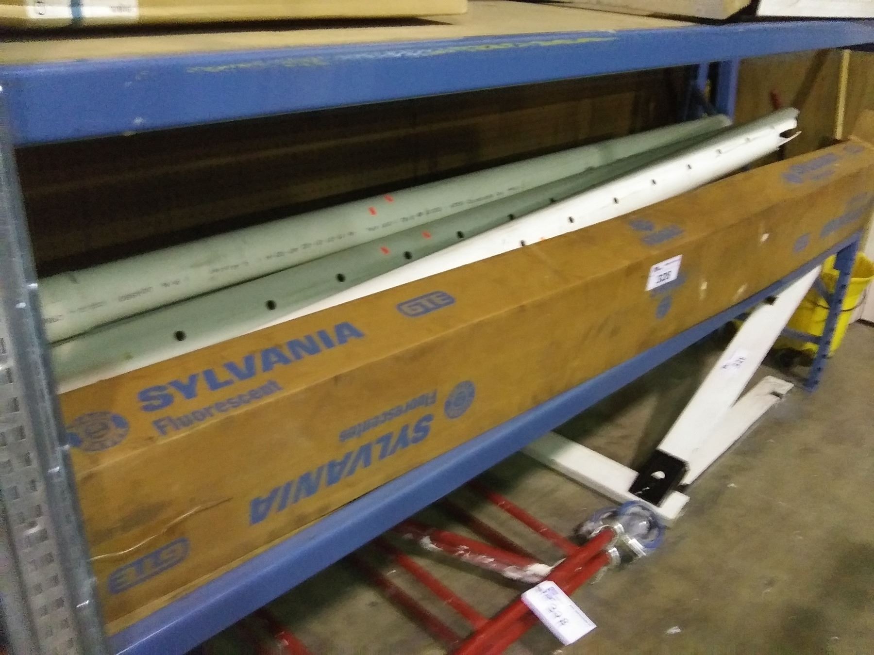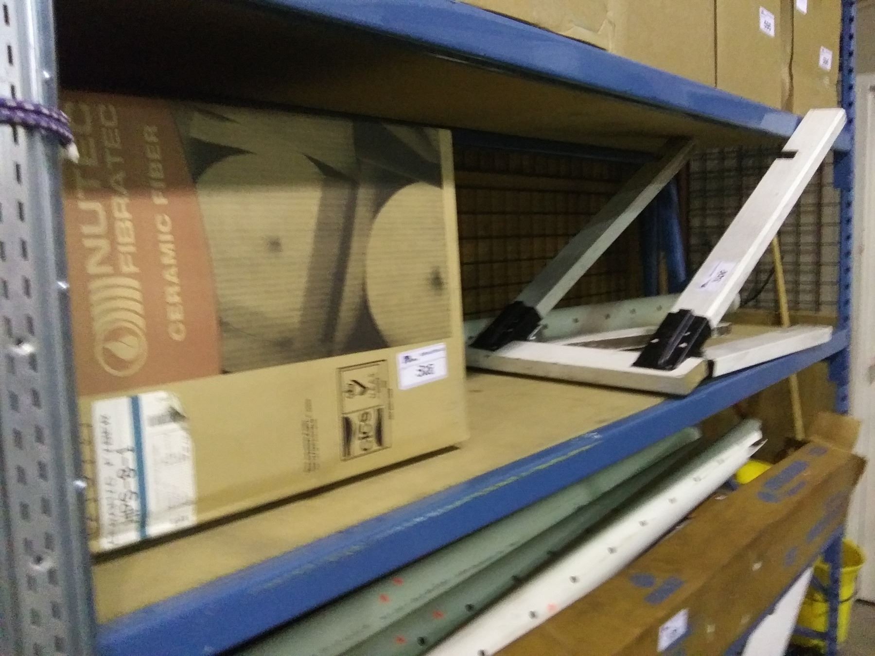 INSULATION, 2 SAW HORSES, SCAFFOLDING SECTION, SIGN, CHAIR, PVC PIPES & LIGHTING