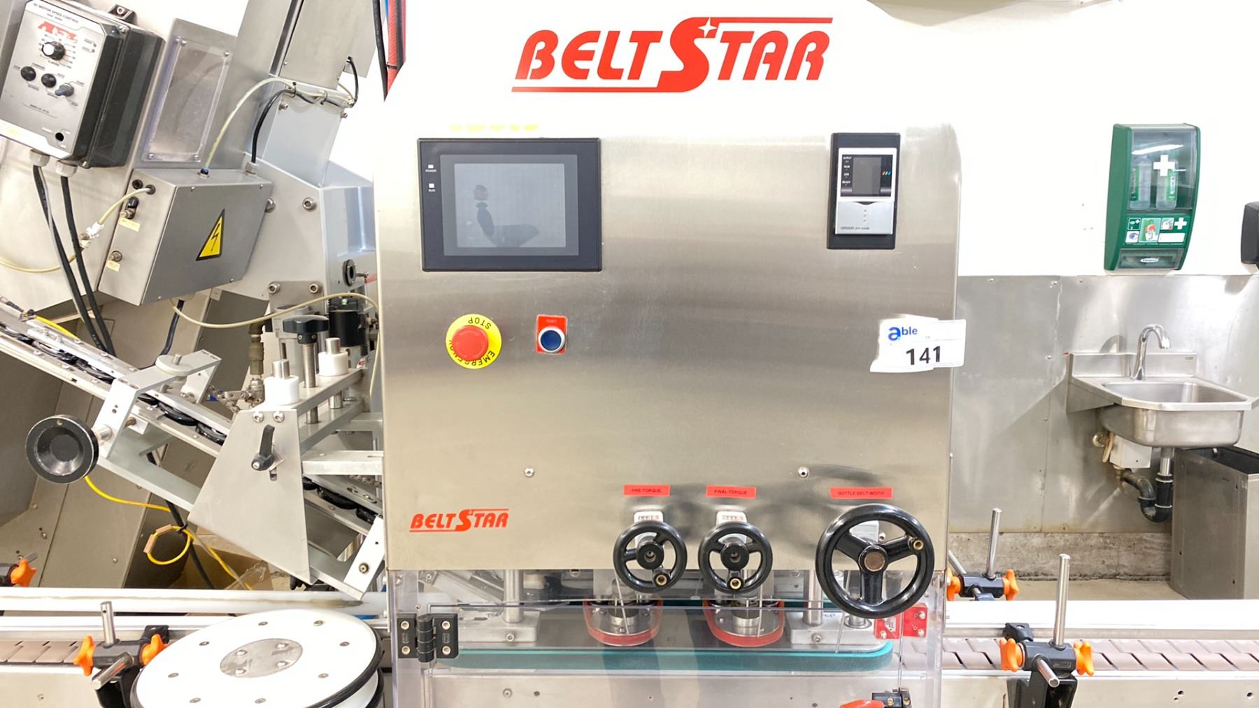 INTEGRATED LINE FOR CAPPING, LABELING, CODING, METAL DETECTING FOR SQUARE AND OCTAGONAL JARS. CAPMATIC ROTATING TABLE, BELT STAR BOTTLE CAPPER WITH ADJUSTABLE CAP TORQUE, SECONDARY CAP TORQUER, LABEL STAR ORIGINAL13 LABEL INSTALLER, CSS INTERNATIONAL BASE CODING DIVERTER WITH DOMINO INKJET PRINTER AX350I, AESUS BOTTLE TOP FILM APPLICATOR AND OAL HEAT SEALER, FINAL ROTATING TABLE. INC SERVICE MANUALS AND RECORDS, SCALE, EXTRA SERVICE PARTS. FULLY OPERATIONAL UNIT. INC SPARE HEAD FOR LABEL MACHINE. LOCATED IN LINE ROOM 2 *REQUIRES TOOLS, HELP & PROFESSIONAL TO DISMANTLE* *FORTRESS METAL DETECTOR NOT INCLUDED*