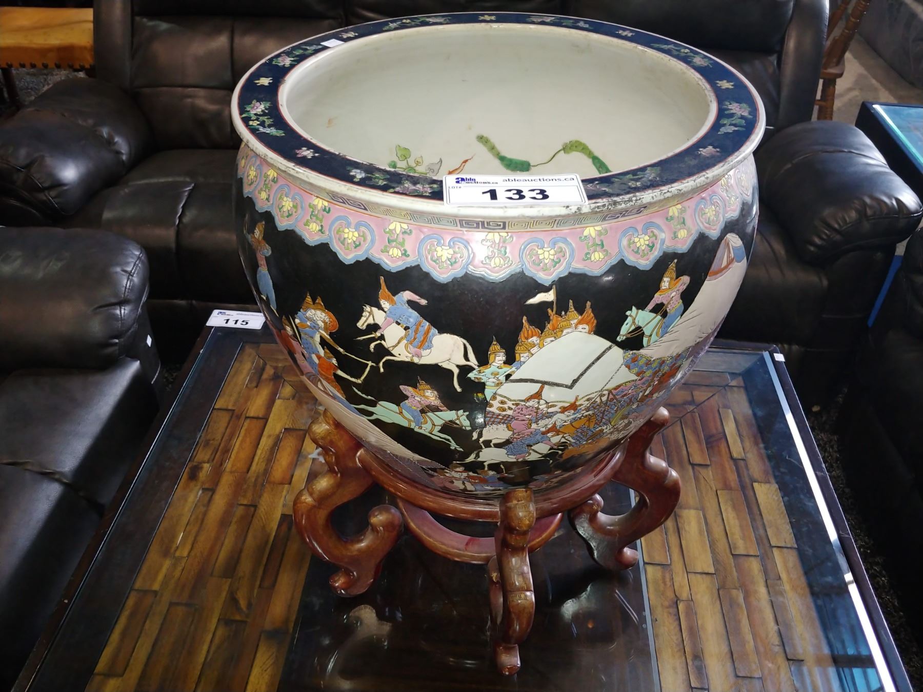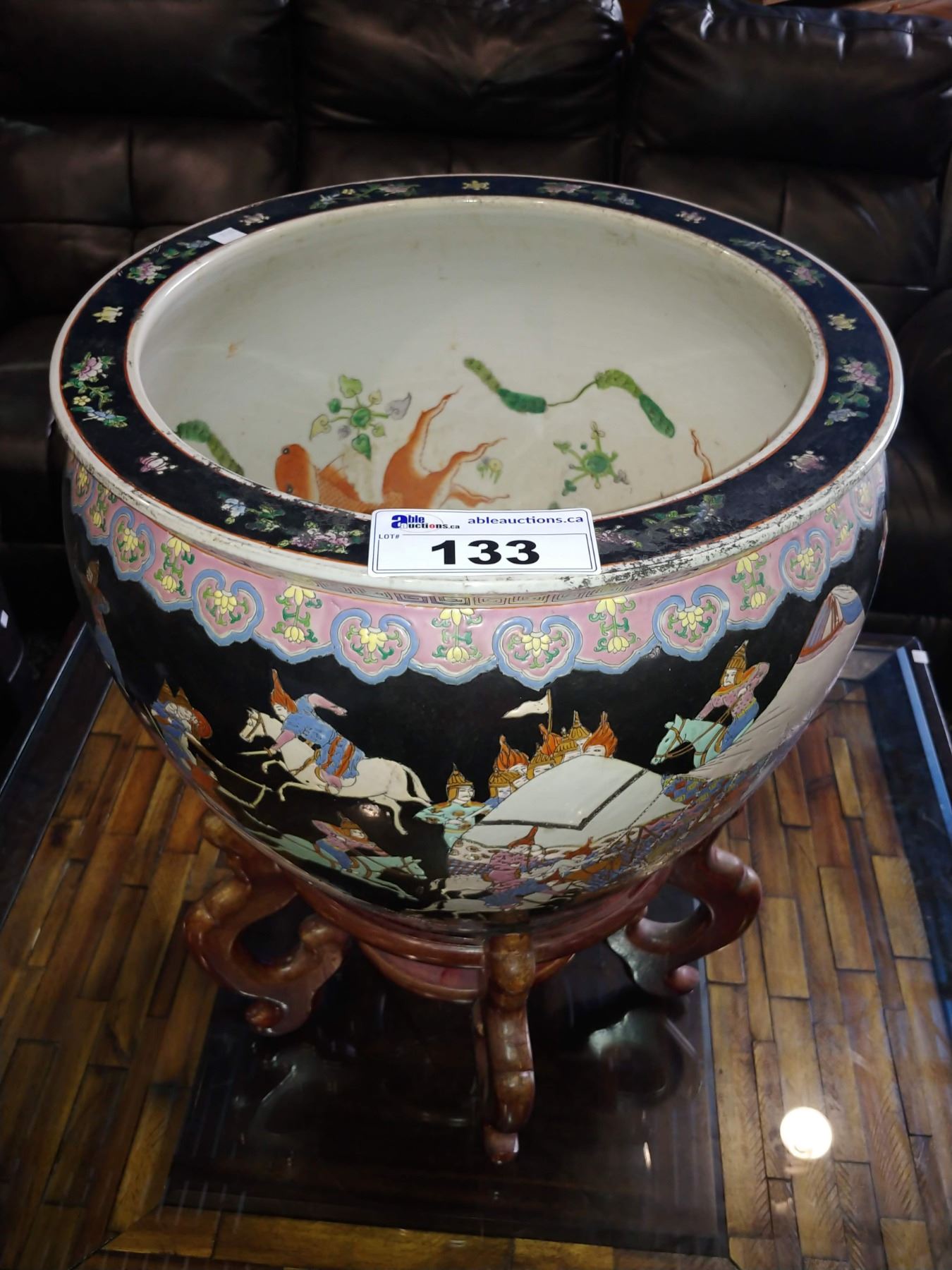 INTRICATE ASIAN FISHBOWL ON WOOD STAND