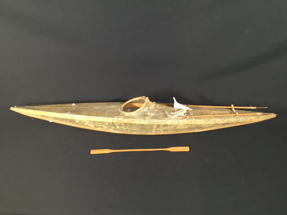 INUIT KAYAK WITH SPEARS 40" L X 7" H ATTRIBUTED TO ARTIST: H. PAOLIKNAK