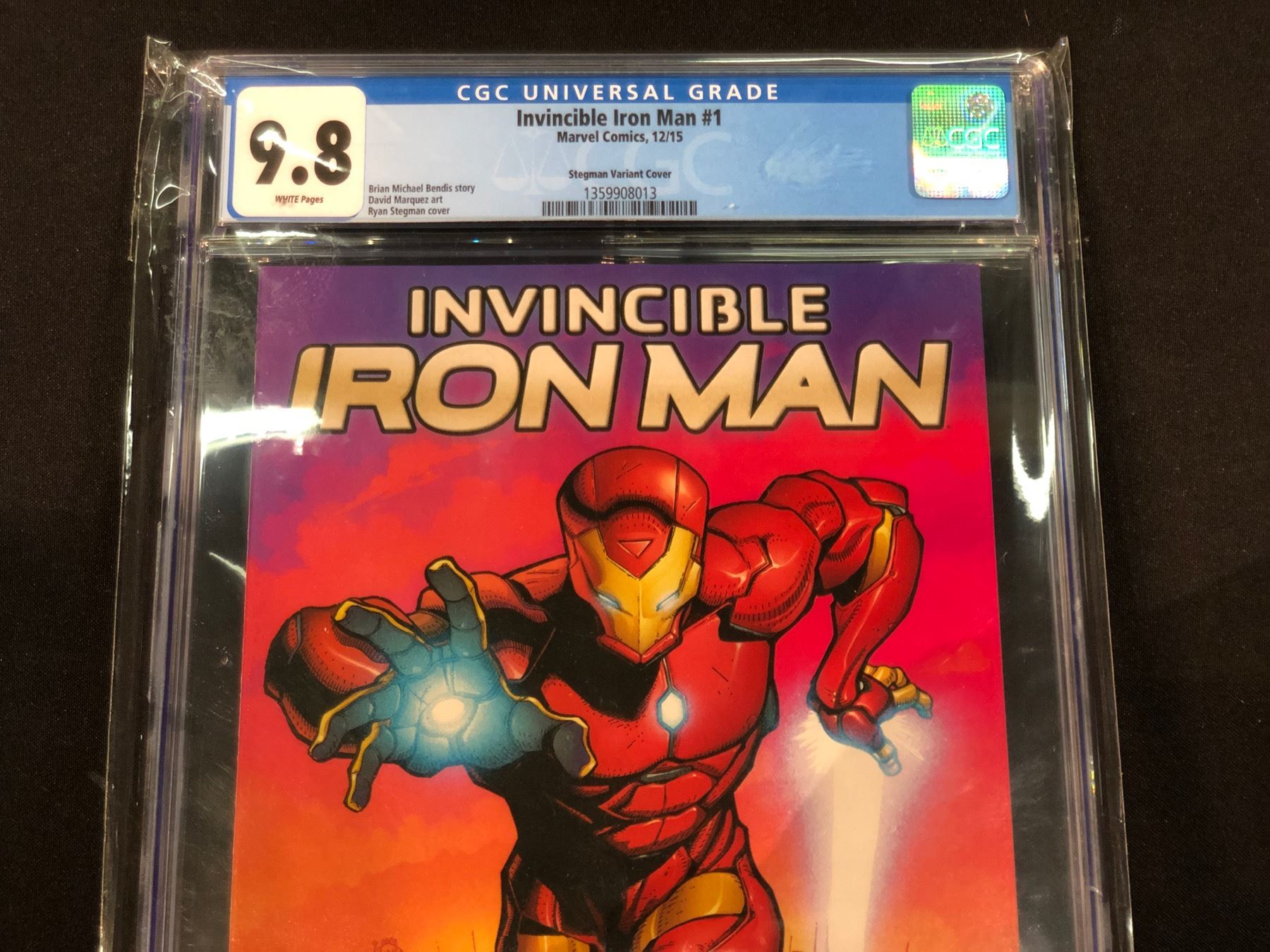 INVINCIBLE IRON MAN #1, STEGMAN VARIANT COVER, CGC GRADED 9.8, SEALED IN PROTECTIVE CASE