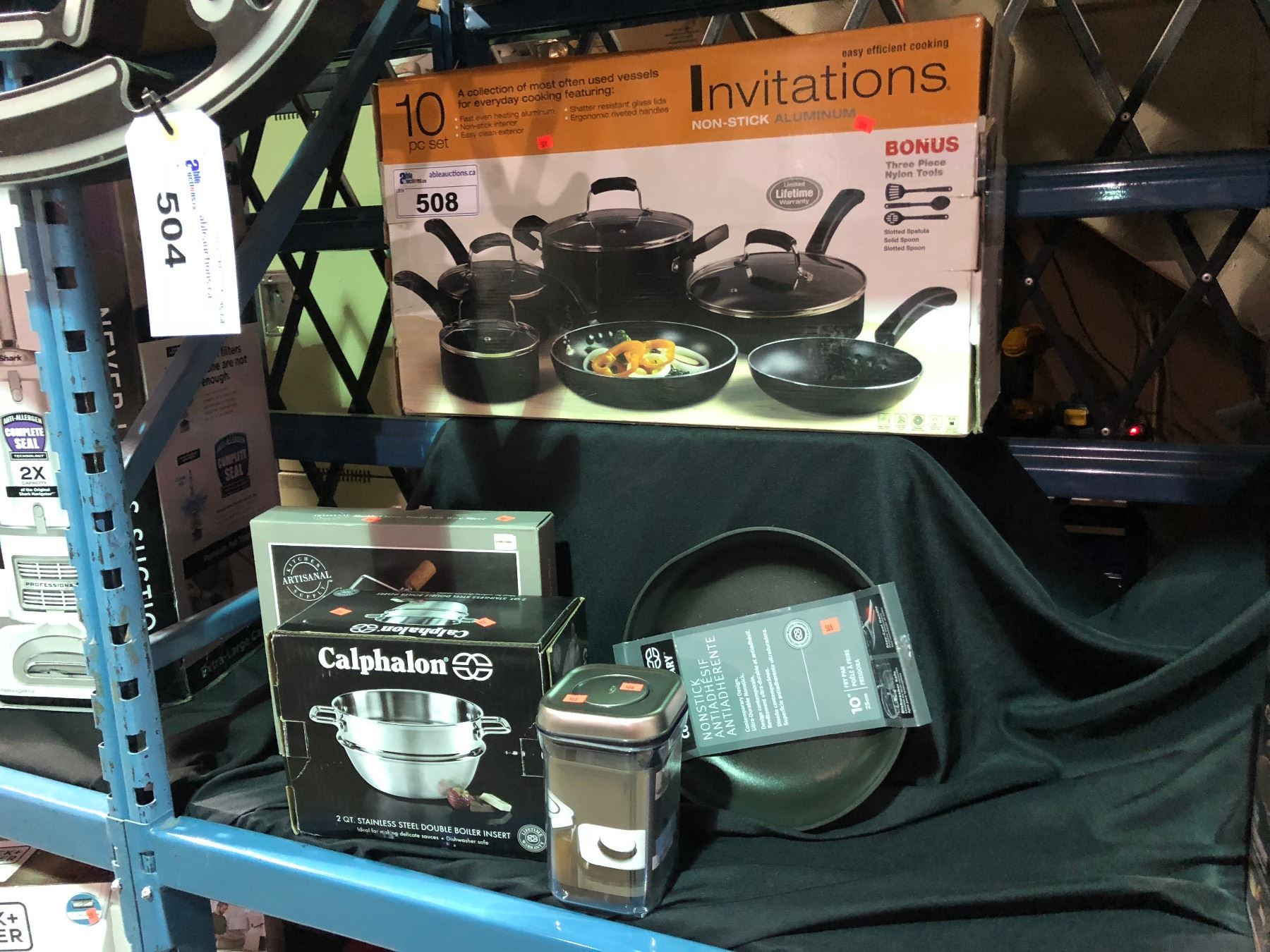 INVITATIONS 10 PCS NONSTICK ALUMINUM COOKWARE SET, STAINLESS STEEL DOUBLE BOILER INSERT, MARBLE CHEESE BOARD WITH WIRE SLICER & NONSTICK FRYING PAN