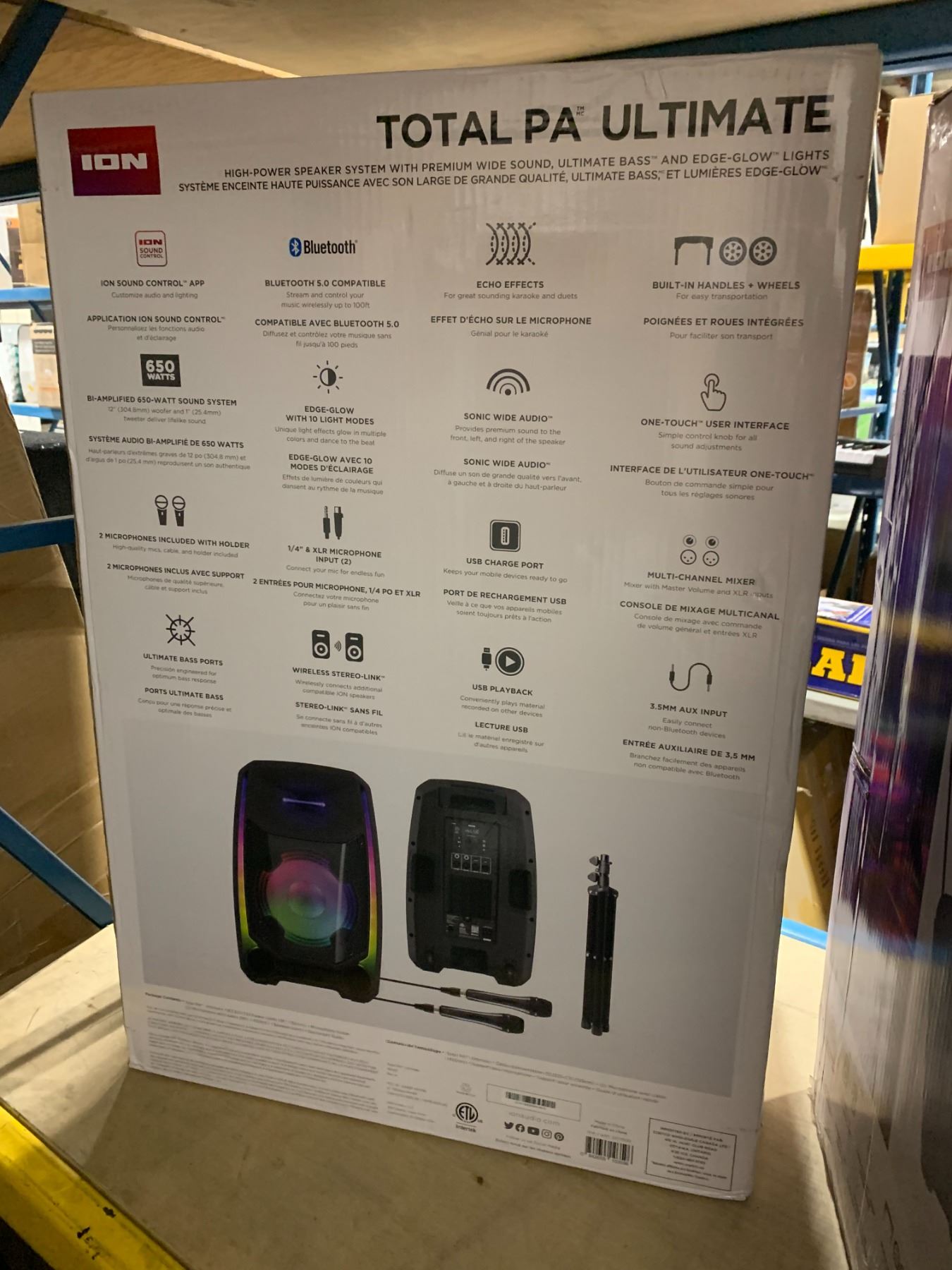 ION TOTAL PA ULTIMATE ELECTRIC LIGHT UP BLUETOOTH SPEAKER WITH BUILT IN HANDLES/WHEELS & 2 MICROPHONES