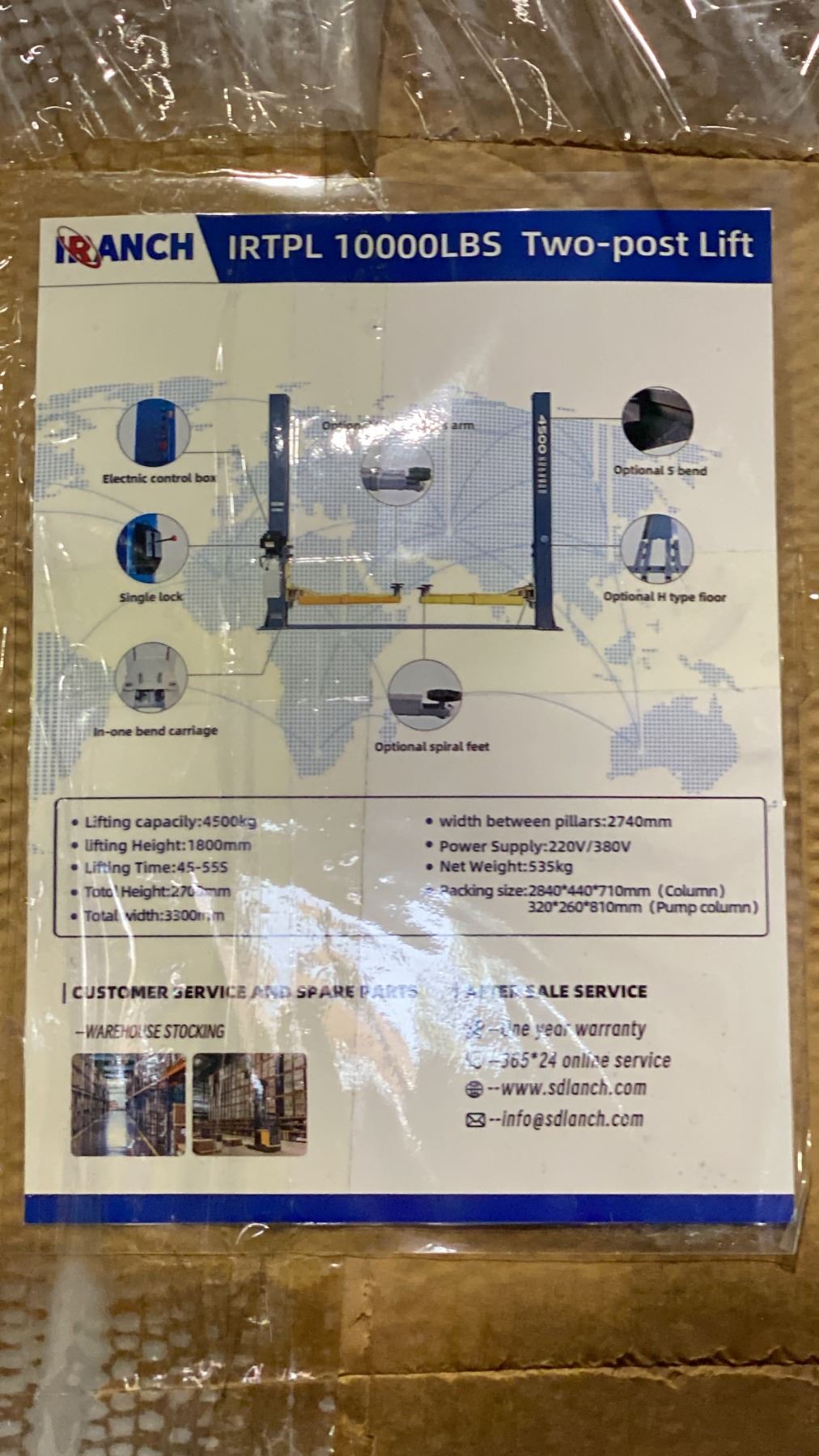 IRANCH IRTPL 10,000 LBS CAPACITY GREY 2 POST HYDRAULIC / ELECTRIC INDUSTRIAL 4 POINT VEHICLE LIFT *DISASSEMBLED, READY FOR TRANSPORT* *LAST DAY REMOVAL*