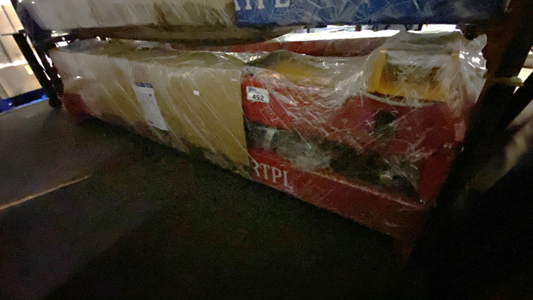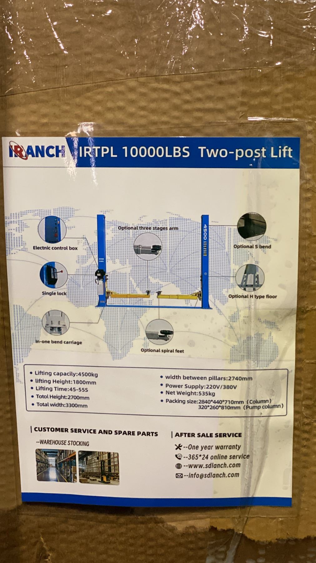 IRANCH IRTPL 10,000 LBS CAPACITY RED 2 POST HYDRAULIC / ELECTRIC INDUSTRIAL 4 POINT VEHICLE LIFT *DISASSEMBLED, READY FOR TRANSPORT* *LAST DAY REMOVAL*