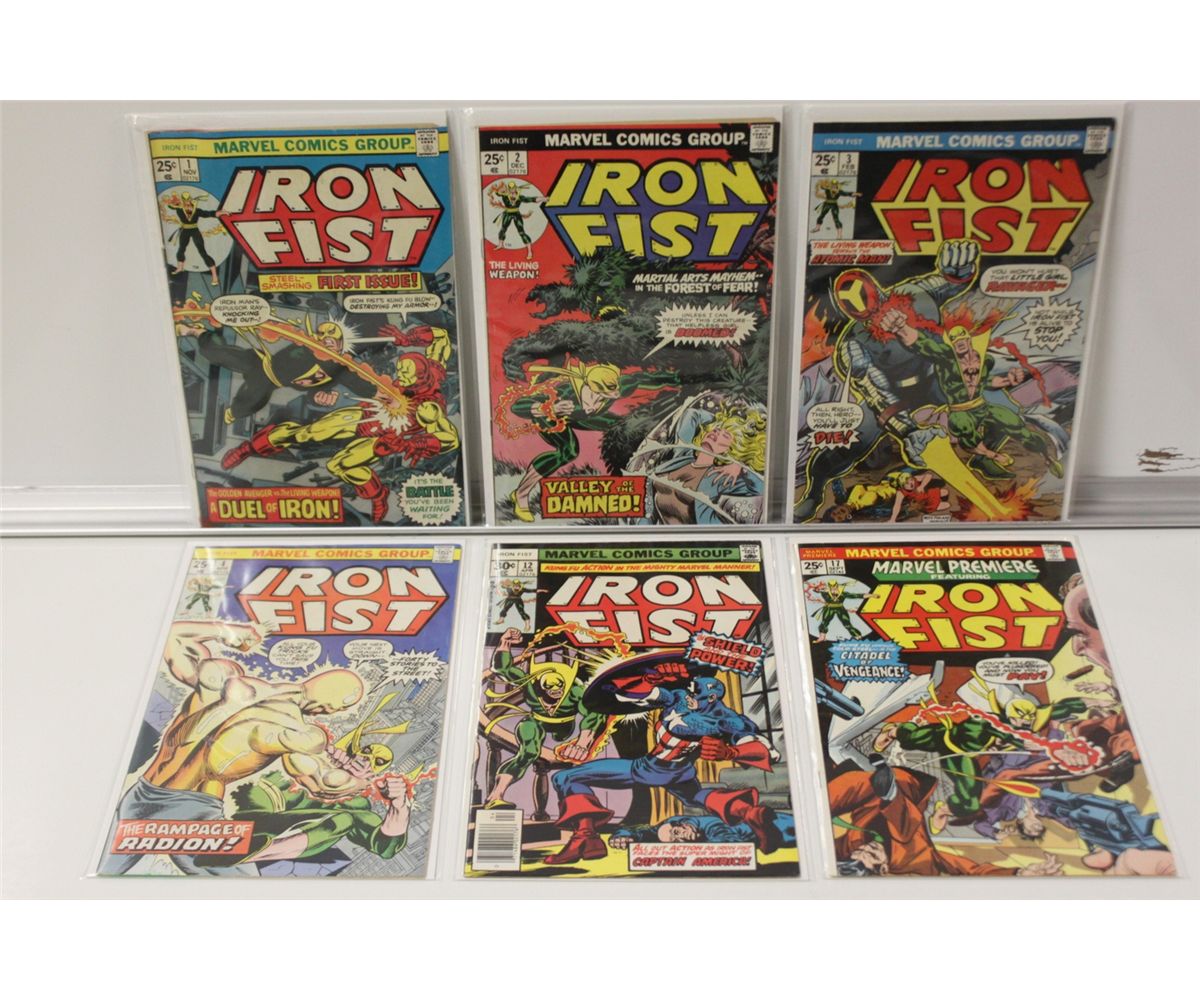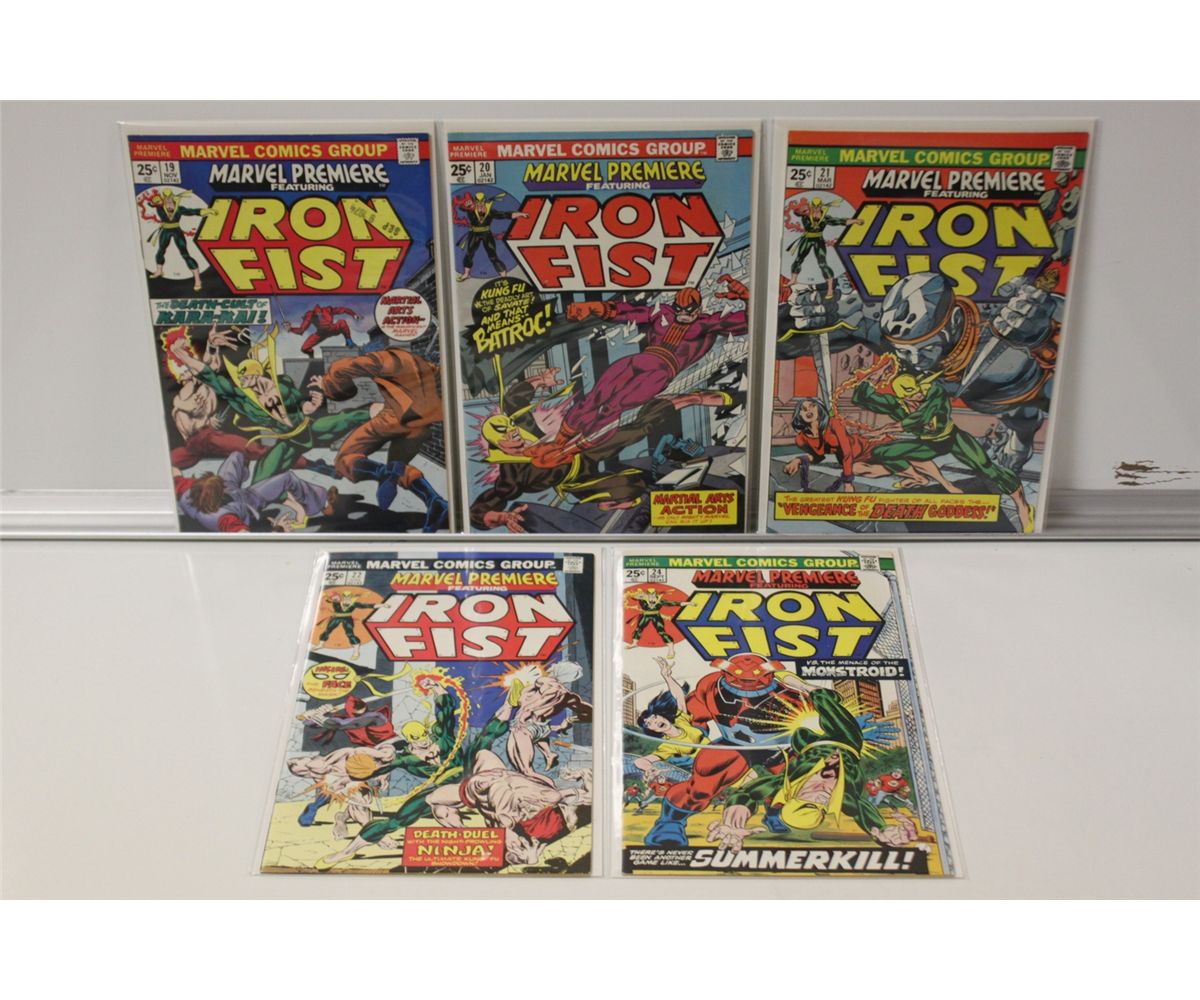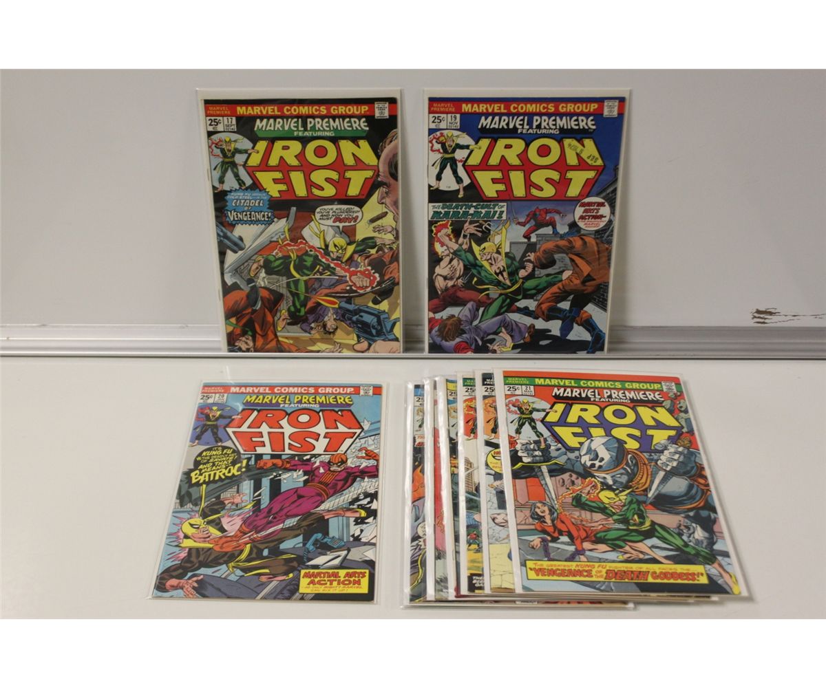 IRON FIST & MARVEL PREMIERE BRONZE RUN.  10 ISSUES: IRON FIST #1 - 4 & 12, MARVEL PREMIERE #17, 19-22 &M 24 (1974-77) MIXED GRADES, MANY SHARP.