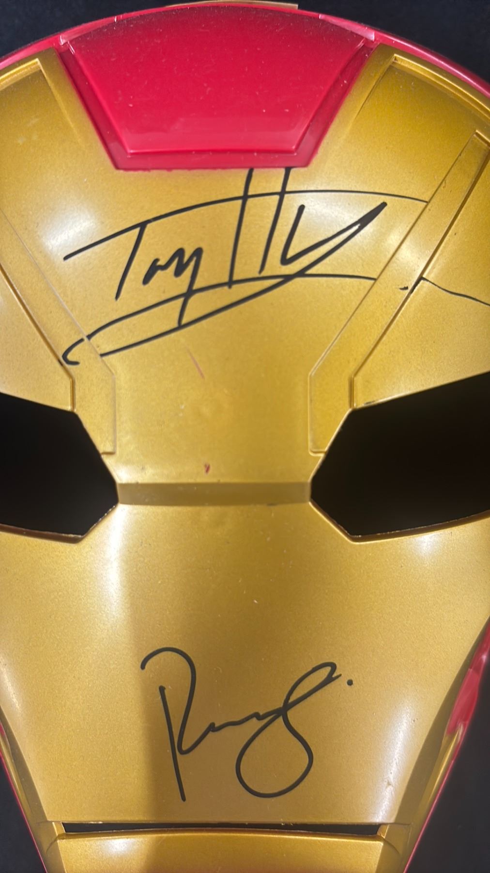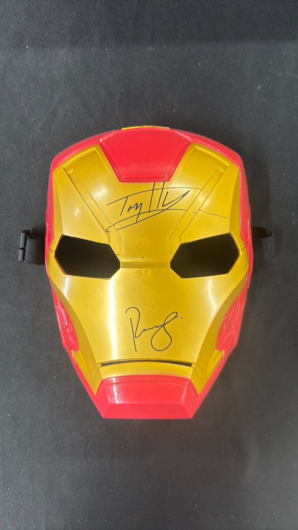 IRON MAN MASK AUTOGRAPHED BY ROBERT DOWNEY JR. & TOM HOLLAND