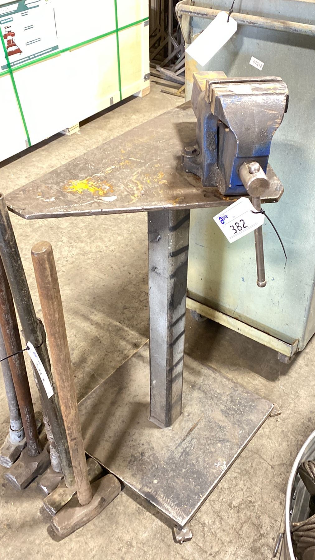 IRWIN RECORD INDUSTRIAL BENCH VISE ON STEEL STAND