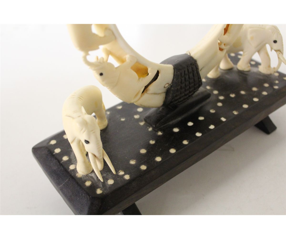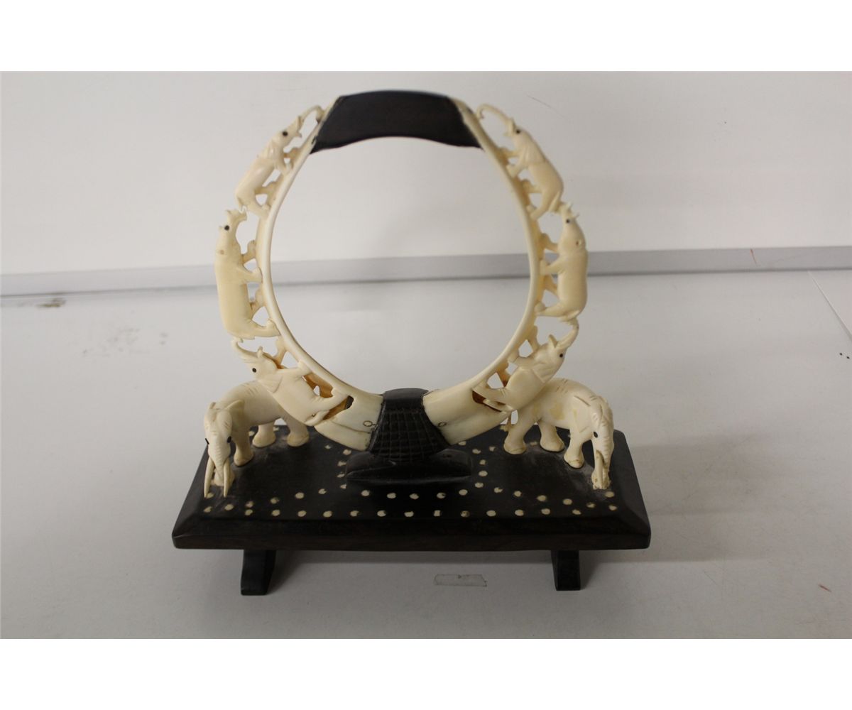 IVORY, RELIEF CARVED ON WOODEN BASE 8" HIGH