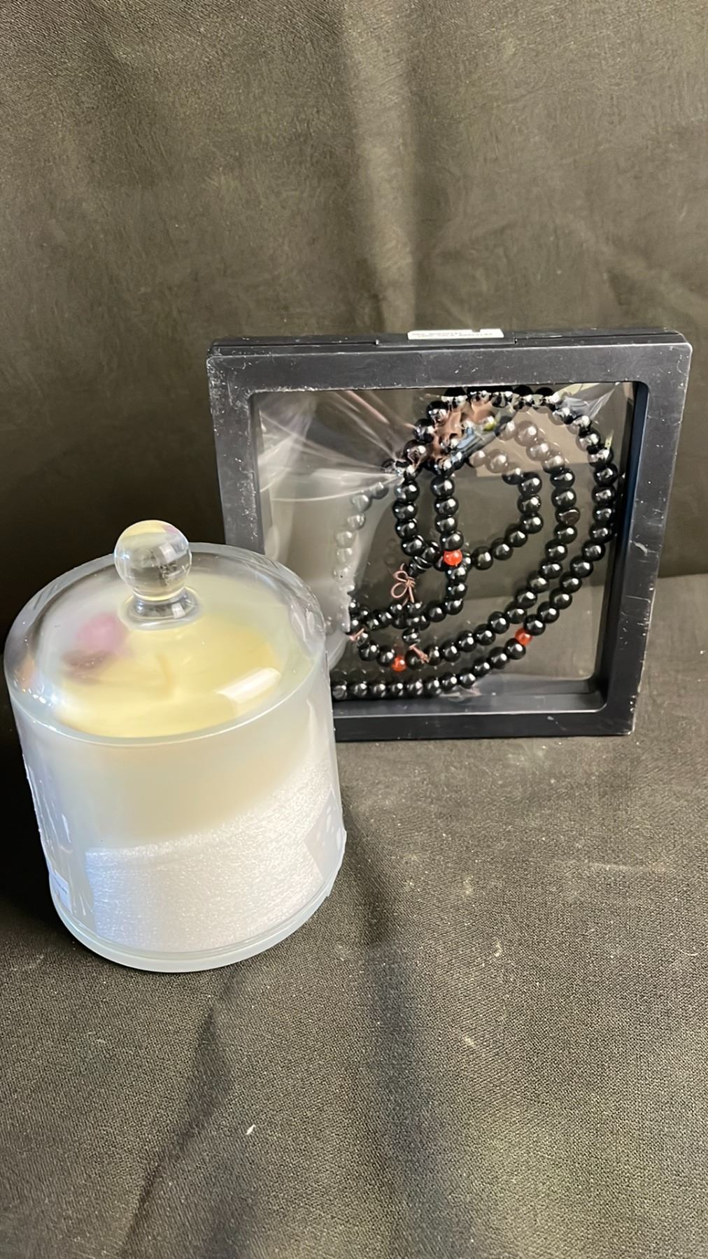 JAAP MALA BRACELET AND LAVENDER CANDLE WITH CRYSTALS RETAIL $380