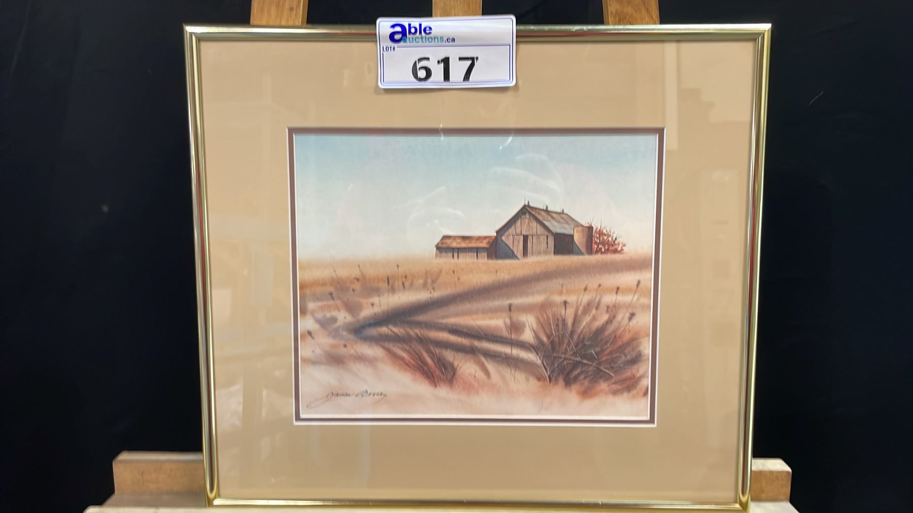 JAMES BESSEY "LATE AUGUST" FRAMED 17" X 15" PRINT - ARTIST INFO ON BACK