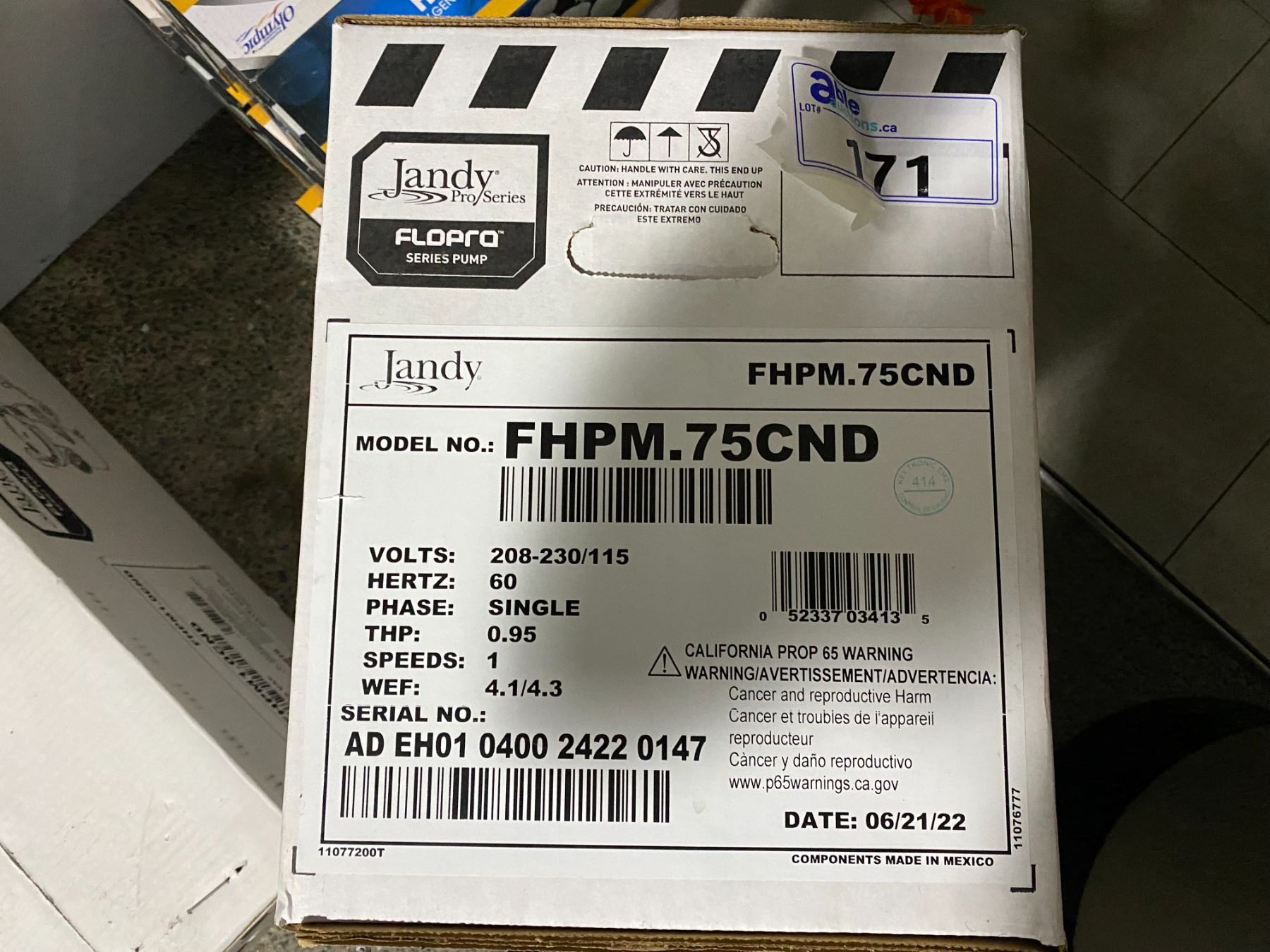 JANDY PRO SERIES POOL PUMP .95 HP MODEL FHP.75CND. 230V