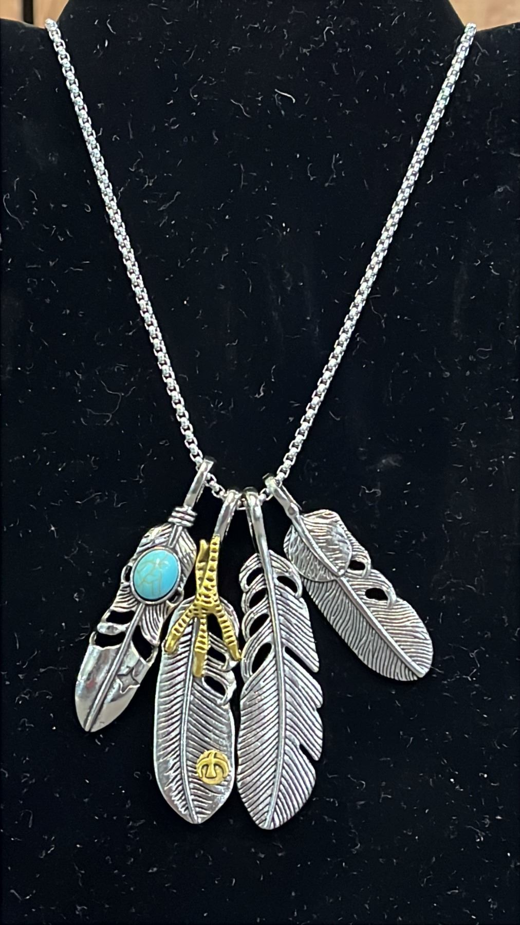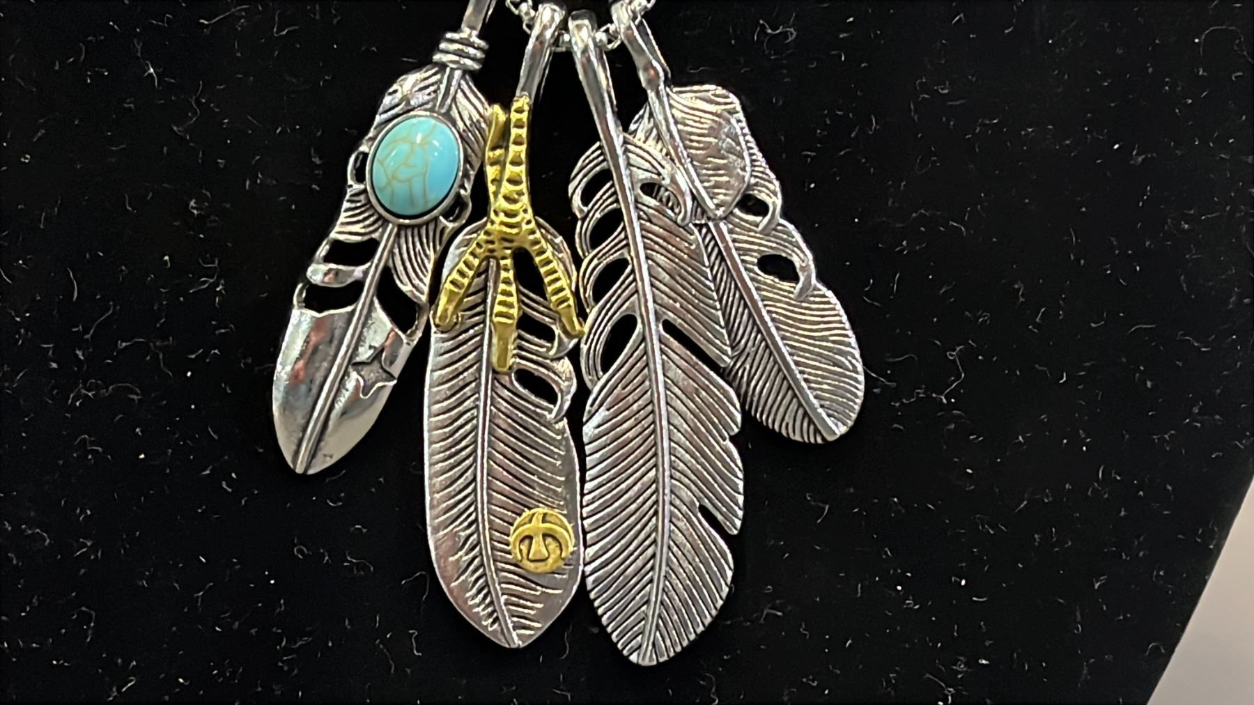 JAPANESE TURQUOISE INLAID FEATHER NECKLACE