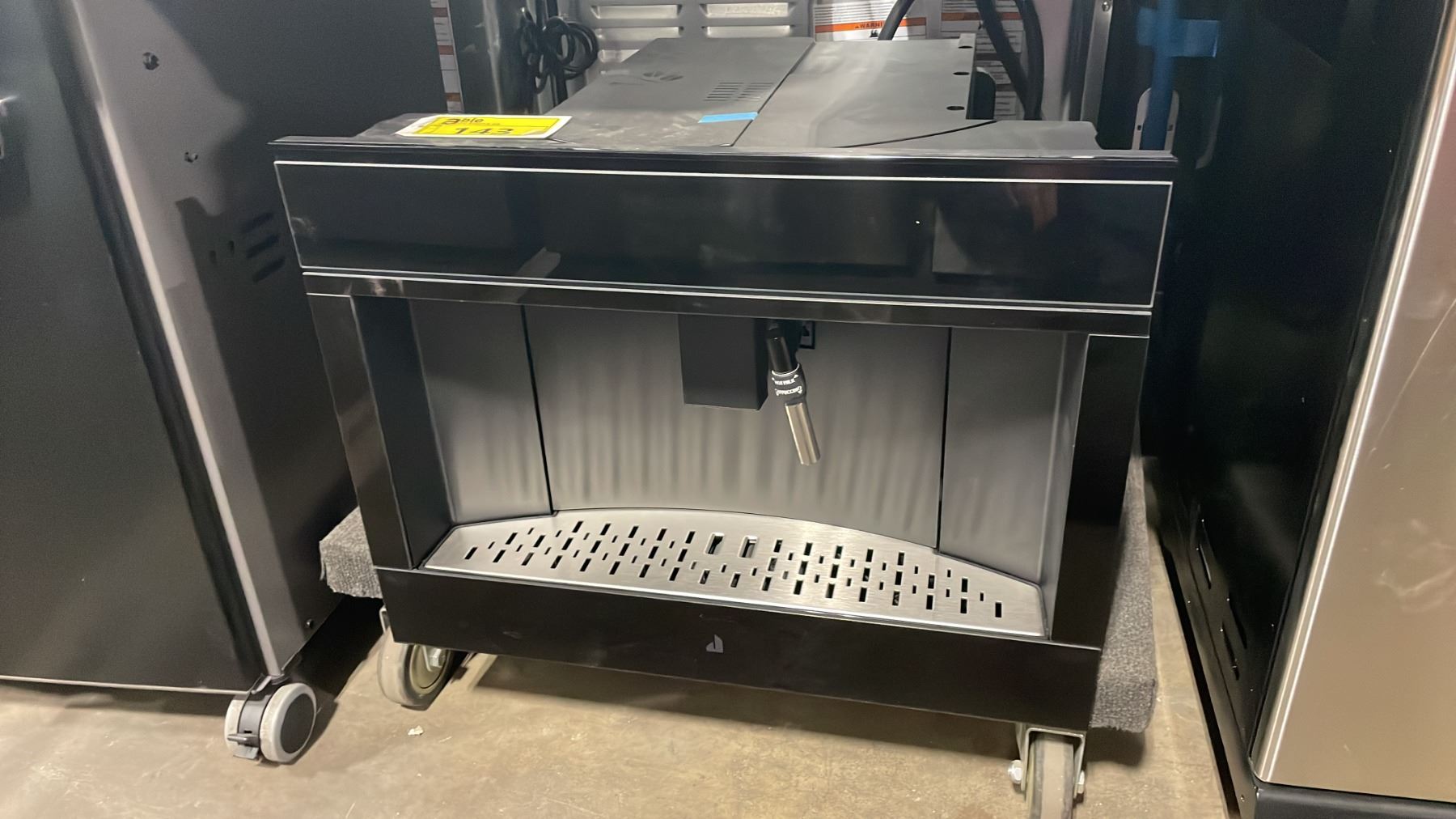 JENN-AIR MODEL JJB6424HM. BLACK 24" FULLY AUTOMATIC BUILT-IN COFFEE BREW STATION WITH DIGITAL DISPLAY *NO SURROUND, 4 WHEEL CART NOT INCLUDED* RETAIL PRICE $5,149.99