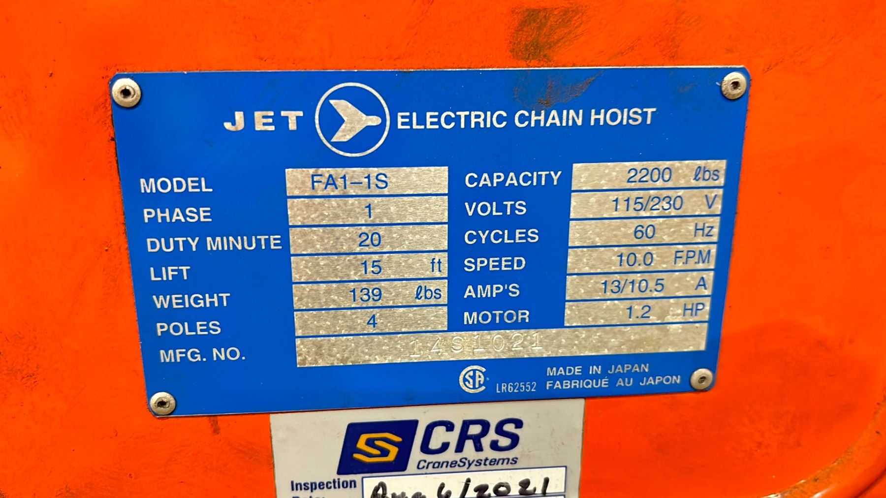 JET 1 TONNE OVERHEAD CRANE HOIST WITH CONTROL