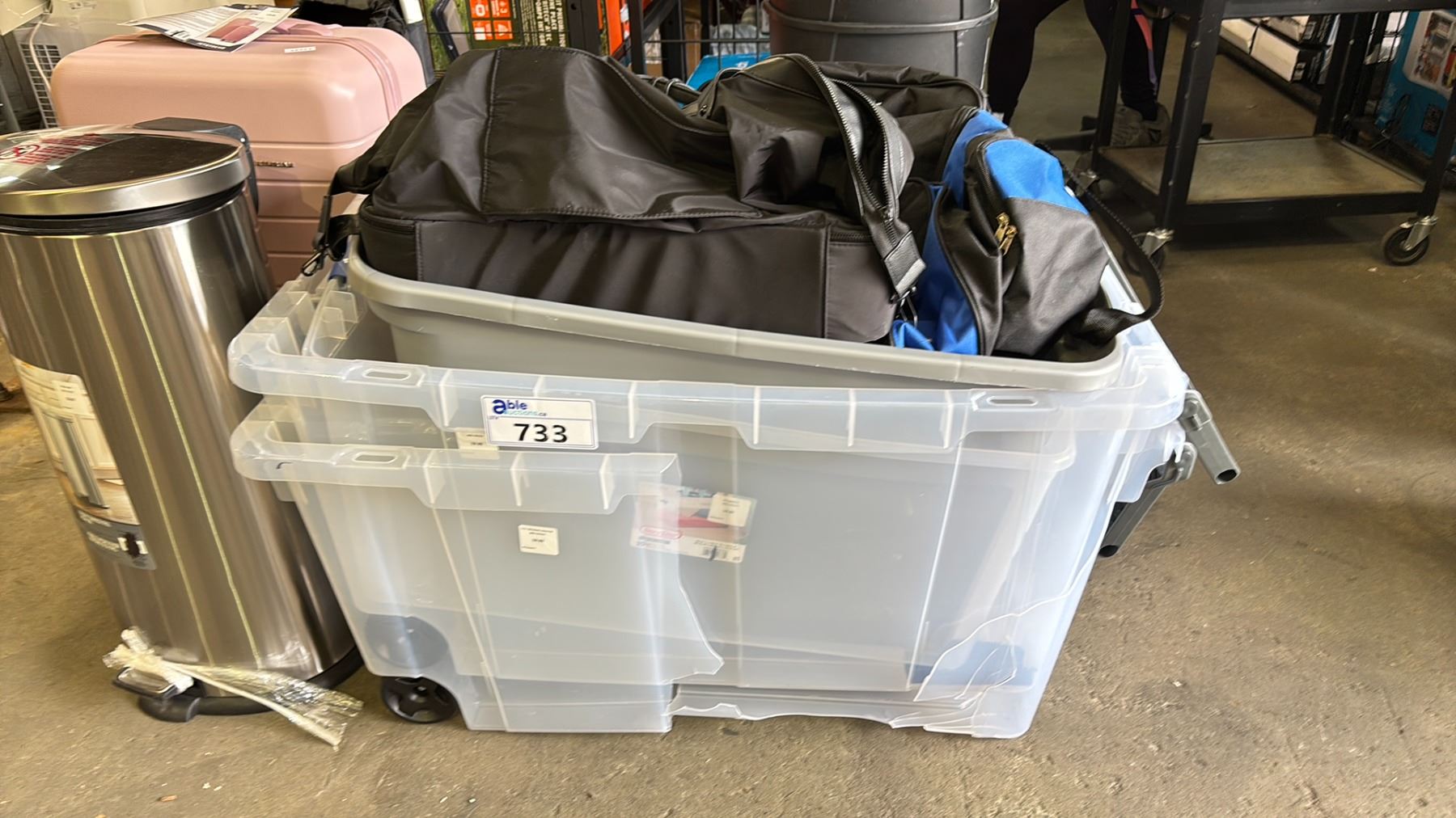 JETSTREAM SUITCASE, STAINLESS STEEL WASTE RECEPTACLES, SHOPPING CART & PLASTIC WASTE RECEPTACLES